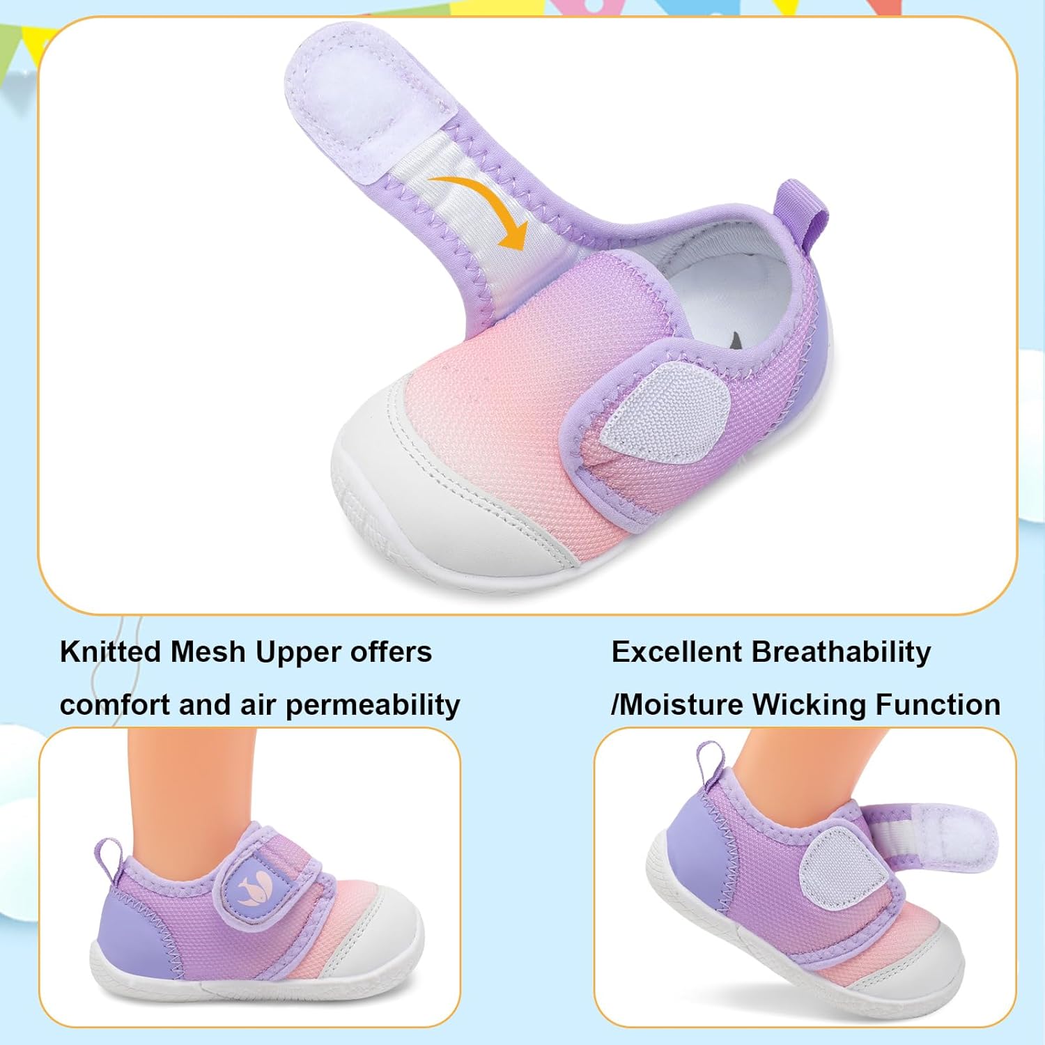 - Upper: Premium quality cotton upper, has excellent breathability, moisture wicking function, and keep baby's feet dry and odorless. Super Soft, Breathable and Comfortable fit all the year.