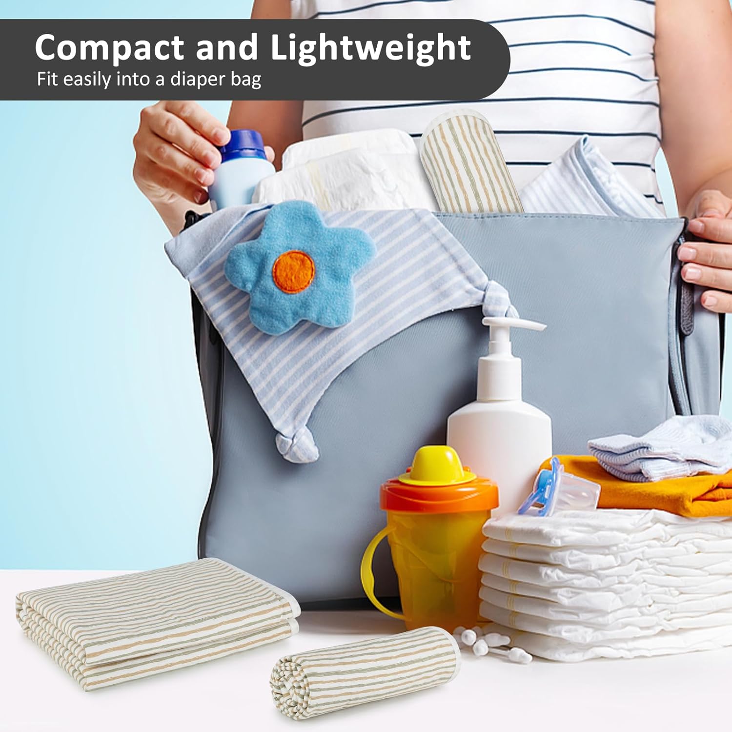 - Folds up Small - This portable changing mat fits easily into a diaper bag, can be easily rolled up for travel or stored in a drawer. Change Diaper On The Go.