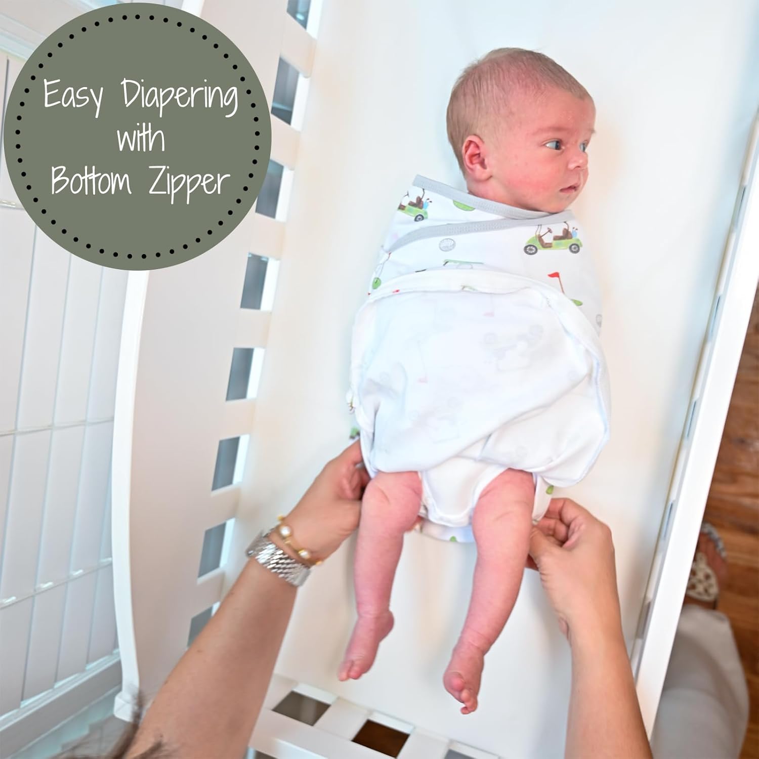 LollyBanks Baby Swaddles, 100% Organic Cotton Swaddles for Newborns Boys and Girls, 3-6 Months Swaddle Sacks with Easy Change Zipper, Swaddle Neutral Baby Registry (Golf Print)