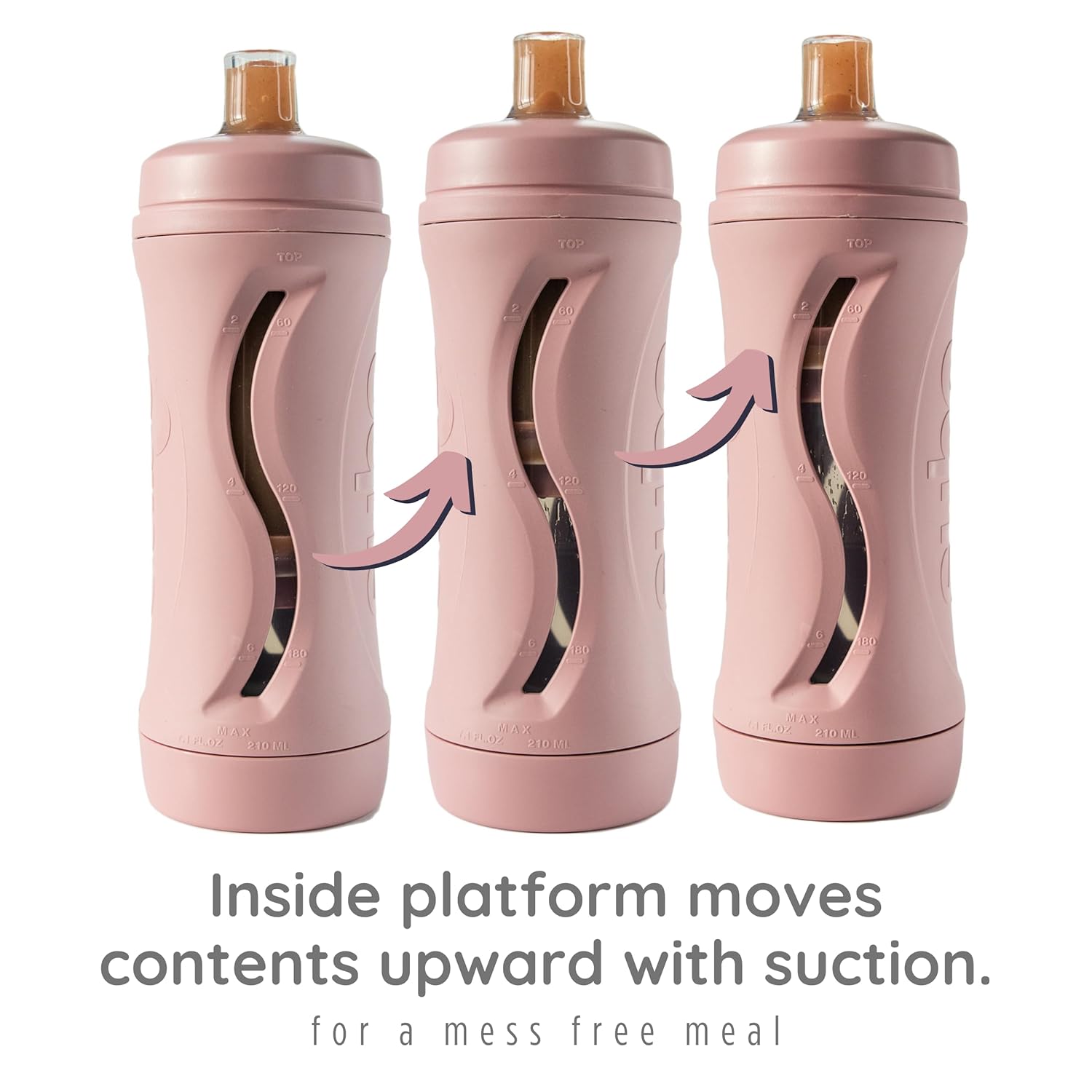 - AUTOMATIC PLATFORM: The Subo food bottle is the perfect feeding solution for young children, starting at just 4 months old. This bottle allows children to easily sip and enjoy their food through a soft silicone spout. The platform inside the bottle automatically moves up as the child consumes the food, ensuring they get every last bit without any struggle. This makes mealtime a fun and stress-free. It comes with an original 12mm (1/2 inch) spout and a 5mm (1/4 inch) straw spout.