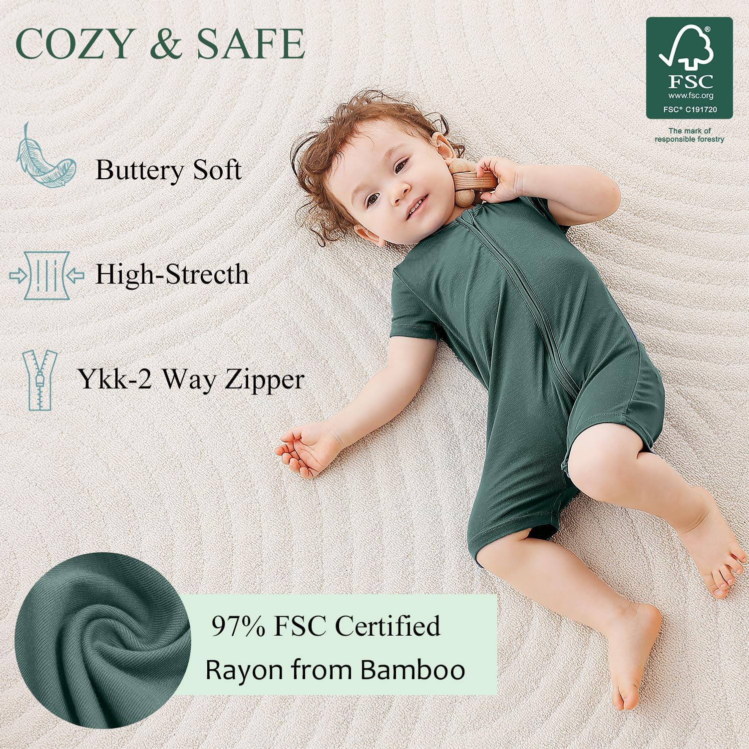 JunNeng Baby 2 Pack Rayon of Bamboo Romper Sleeper 2 Way Zipper Short Sleeve Jumpsuit Zipper Footless One-piece