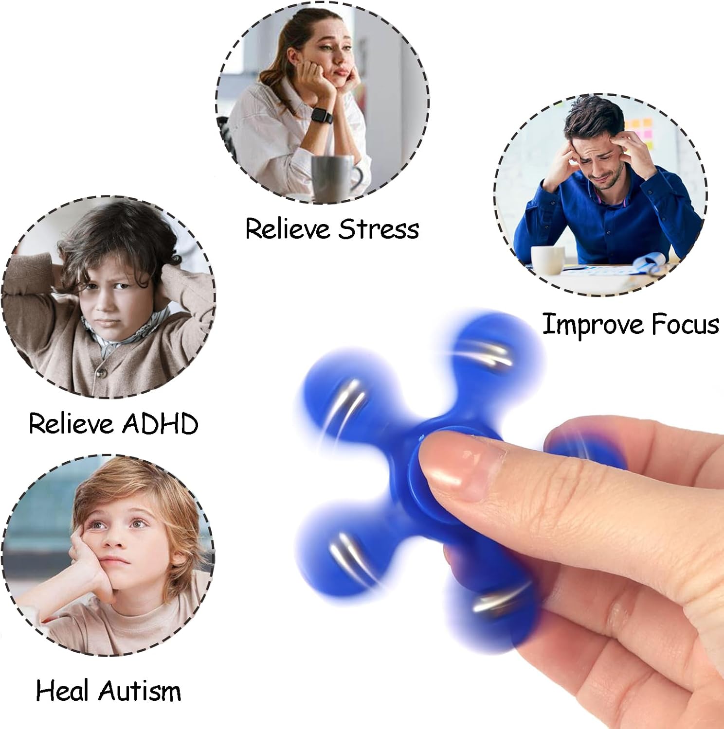 - 💥【Helpful Fidget Spinners】The fidget spinner toy is a perfect stress reducer for kids and adults, also is a great fidget toys for fidgeters who have ADHD, anxiety and stress.Spinners make your brain to relax without having to think.