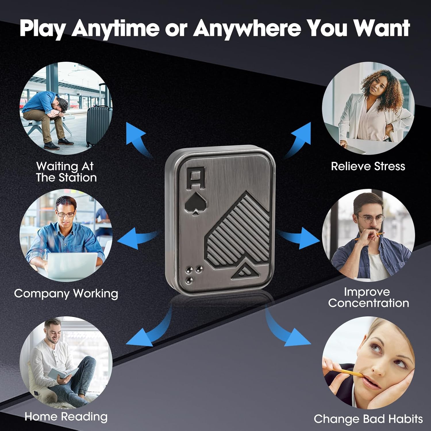 - 【POKER PUSH SLIDER】: The magnetic fidget toy utilizes internal magnets that simulate the unfolding process of playing cards when pushed in the direction of its position. The magnetic force provides force feedback and produces a crisp metallic clanking sound, adding to the satisfaction of using the fidget toys adults. (Tip: You can tighten the screws yourself if they become loose)