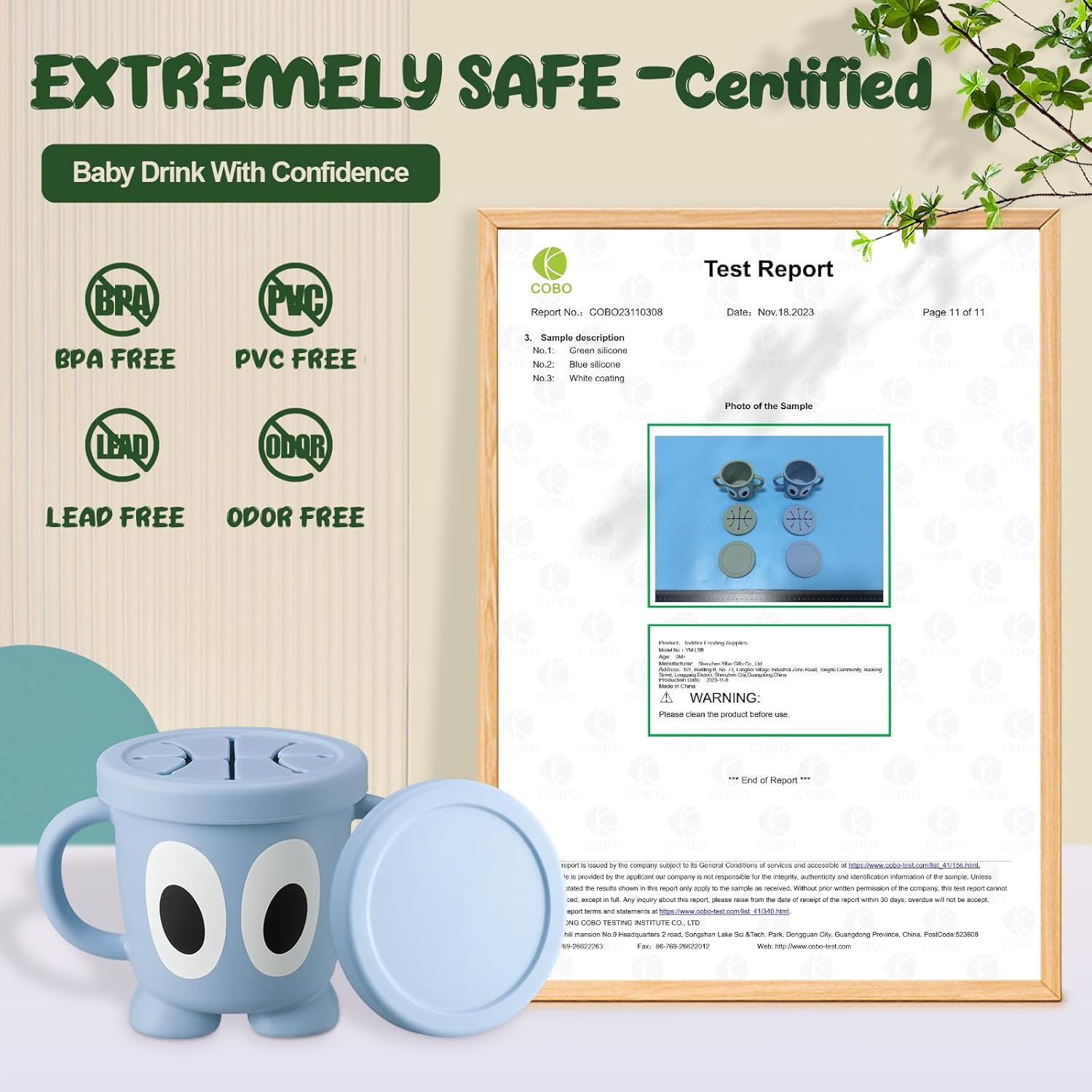 - Baby Snack Cup for Safe Use - Our baby snack containers are made of 100% food-grade silicone, ensuring safety for food, snacks, or even teething. Free from BPA, lead, and phthalates for peace of mind. We recommend cooking in boiling water for a few minutes before first use to better eliminate odors and dust.
