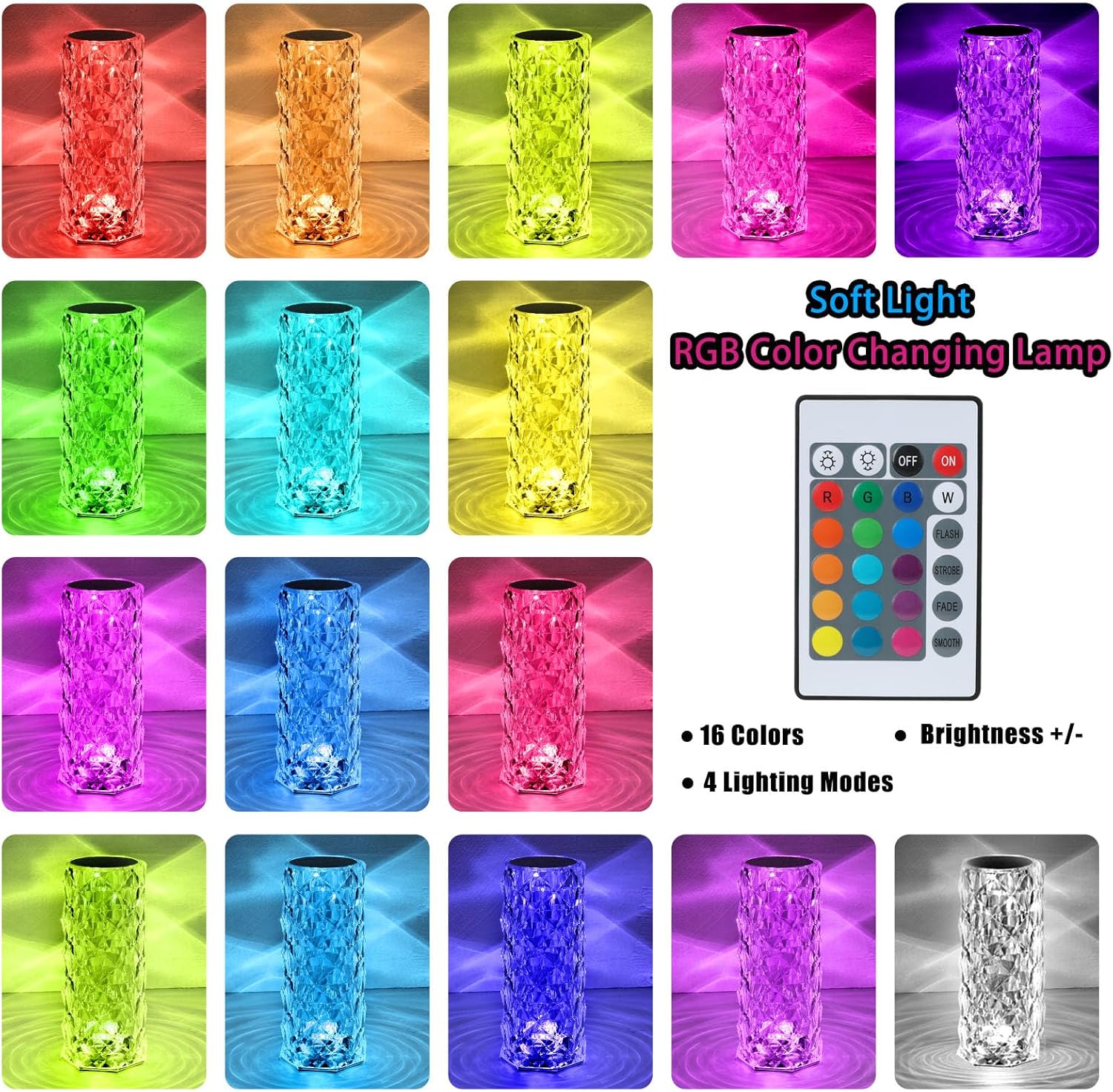 VoMii Crystal Lamp Touch, RGB 16 Colors Changing Night Light, Rechargeable Crystal Table Lamp Bedside Lamp, Rose Wave Diamond Night Light, Ambient Lighting for Bedroom/Game Room/Dinner/Living Room