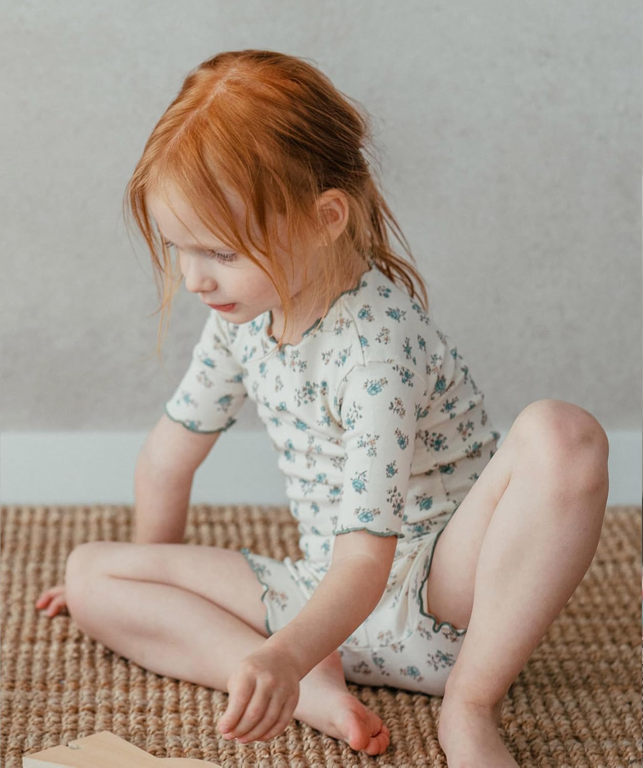 AVAUMA Baby Boy Girl Pajama Set 6M-7T Kids Cute Toddler Snug fit Flower Pattern Design Pjs Cotton Sleepwear Ruffled Shirring
