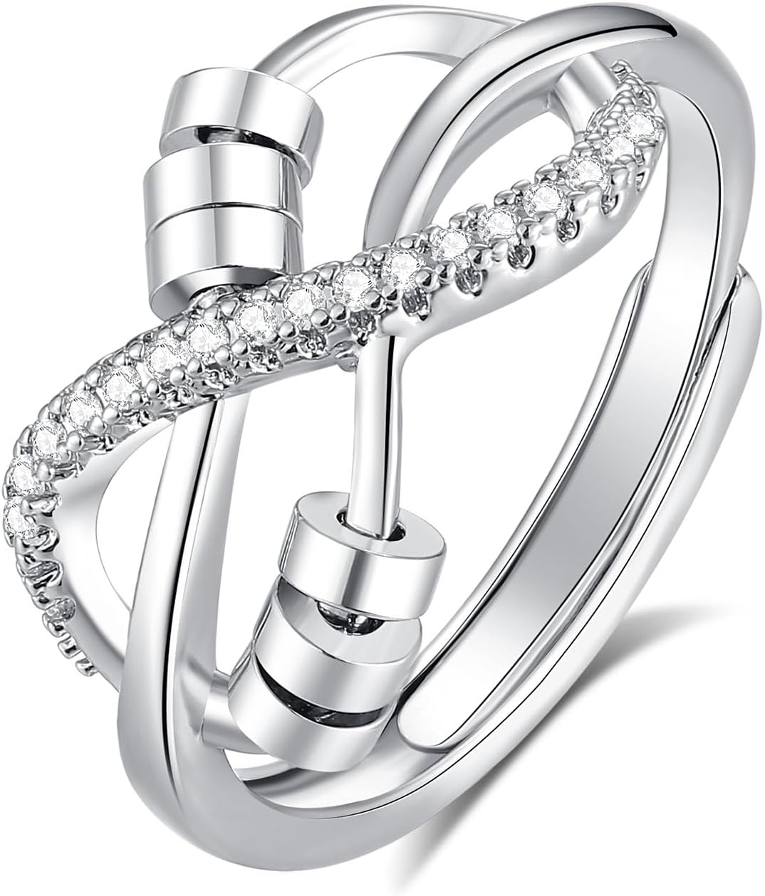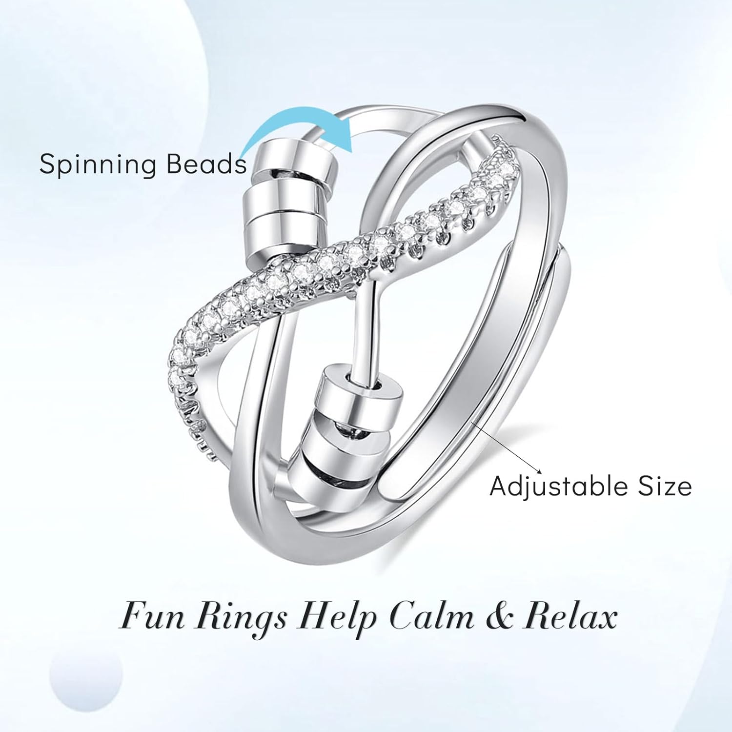 INFUSEU Funny Spinner Fidget Rings for Women Girls Anti Anxiety Stress Worry, Adjustable Size