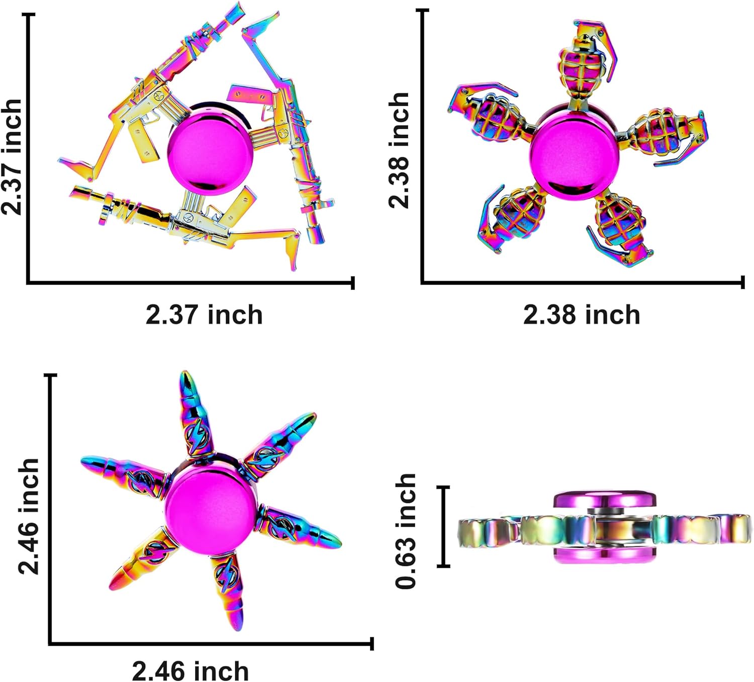 - Metal Fidget Spinners - These fidget spinners are made of high-quality metal material which is much more durable than ABS ones. The smmoth surface, unique design and bright color will give you endless fun without any safety issue