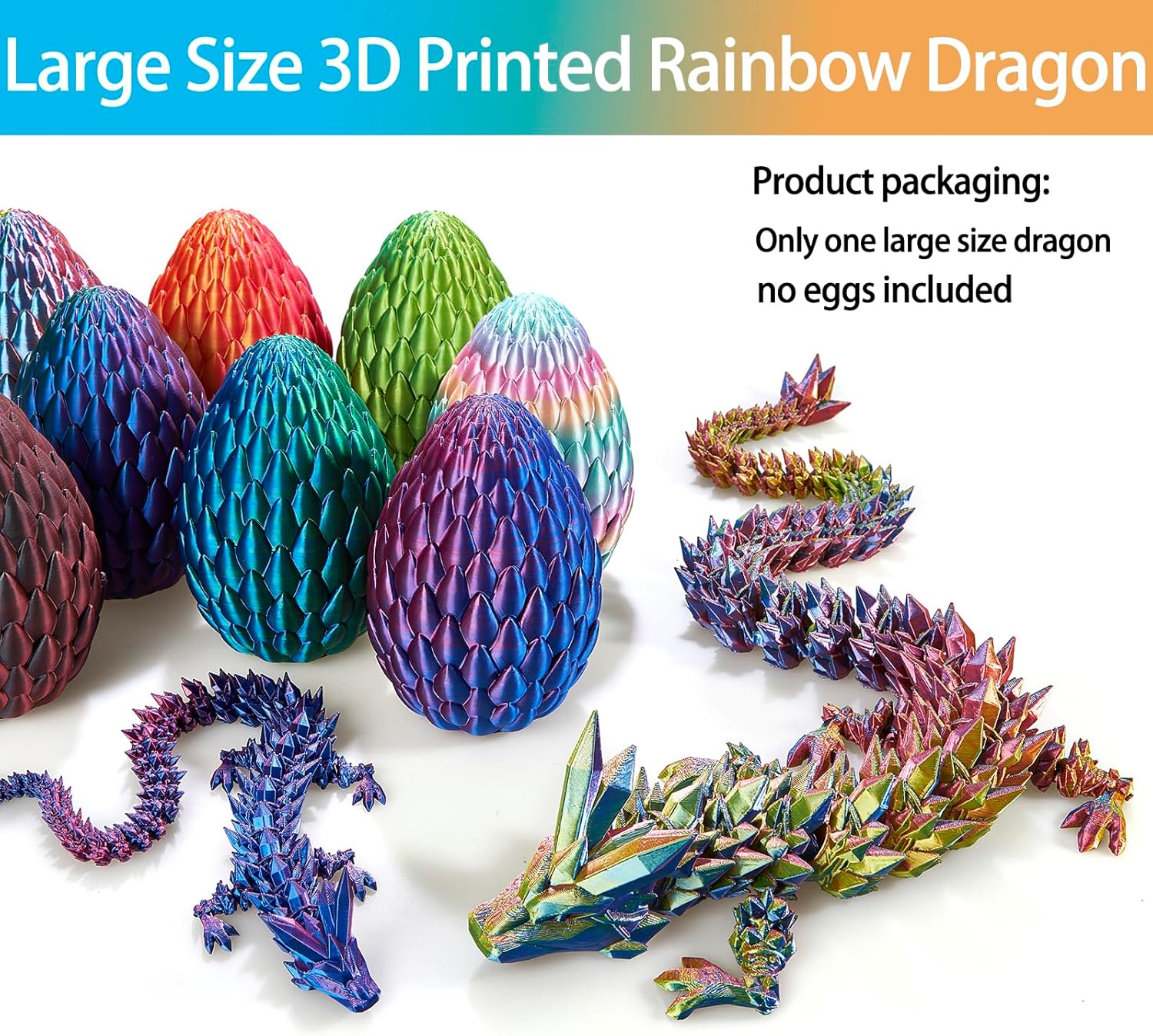 3D Printed Dragon, 30 Inch Crystal Dragon, Bigger Fidget Toys Adults, 3D Printed Articulated Dragon for Home Office Car Desk Decor Toys, Dragon Eggs Gift Given on Birthday (Red Yellow Blue)