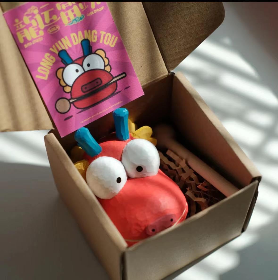Handmade Dragon Head, Traditional Chinese Mascot, Tapping on The Dragon Head, symbolizing Smooth Sailing, eliminating All Troubles, and Continuous Good Luck.
