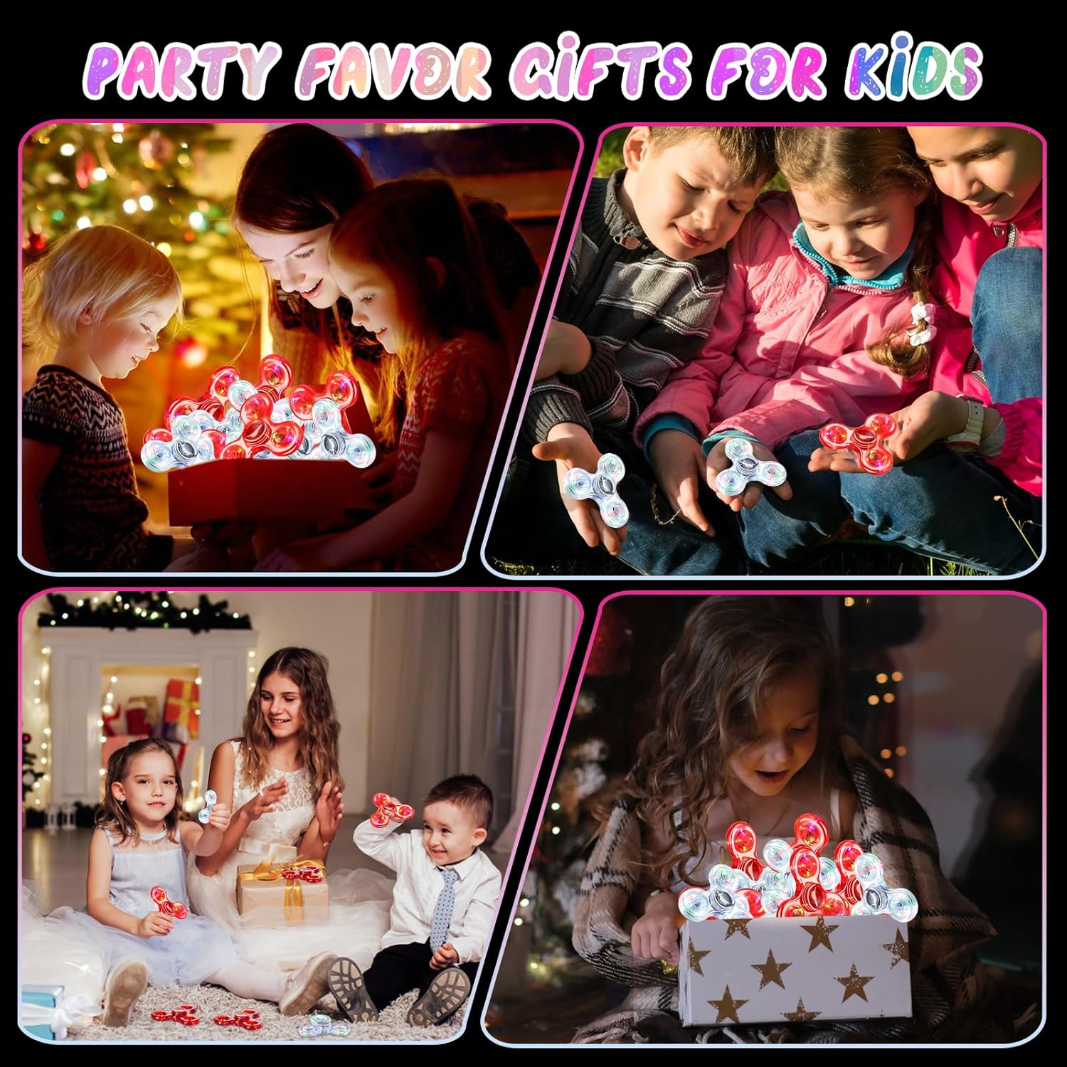 • REUSABLE INDIVIDUALLY PACKED GIFT BOX: What you will get- 1 Pcs Light Up LED Fidget Spinners. Each Spinner will be individually packed in its own box, it's portable and perfect classroom prize gift and return gifts for kids