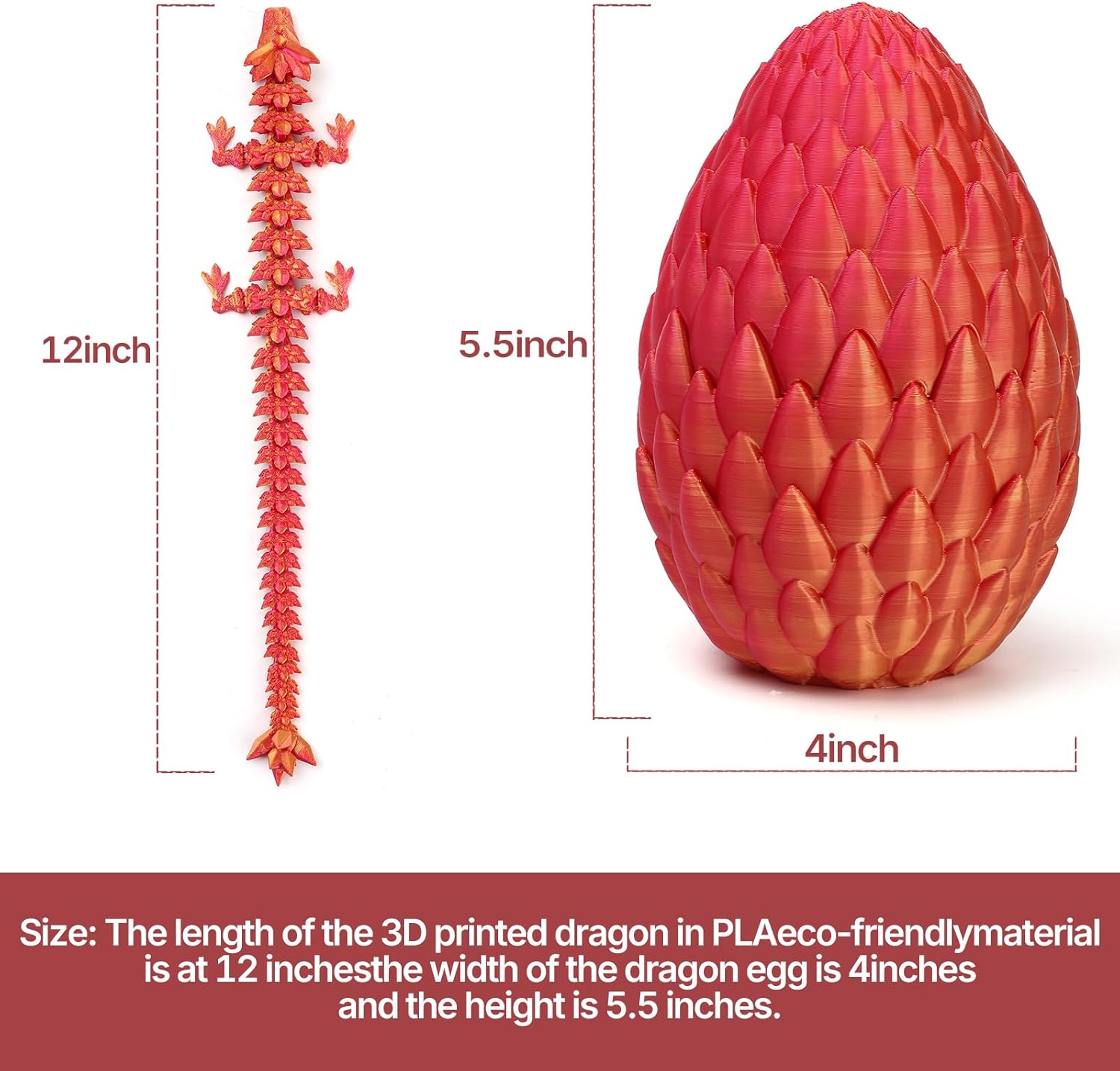 • Eco-Friendly Material: This 3D printed dragon and dragon egg is made of eco-friendly PLA material, and the complex 3D printing technology makes the dragon egg fit tightly. The details are realistic, lightweight and durable.