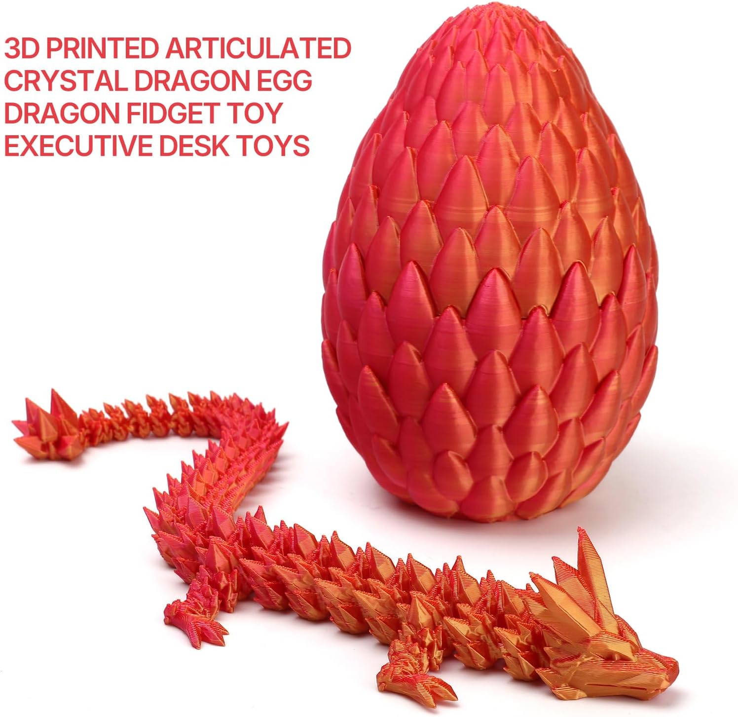 • Note:Multicolored dragons may vary in color pattern from photos due to the nature of the PLA filament when 3D printed. Includes a 12‘’articulated crystal dragon and a 5.5‘’dragon egg.