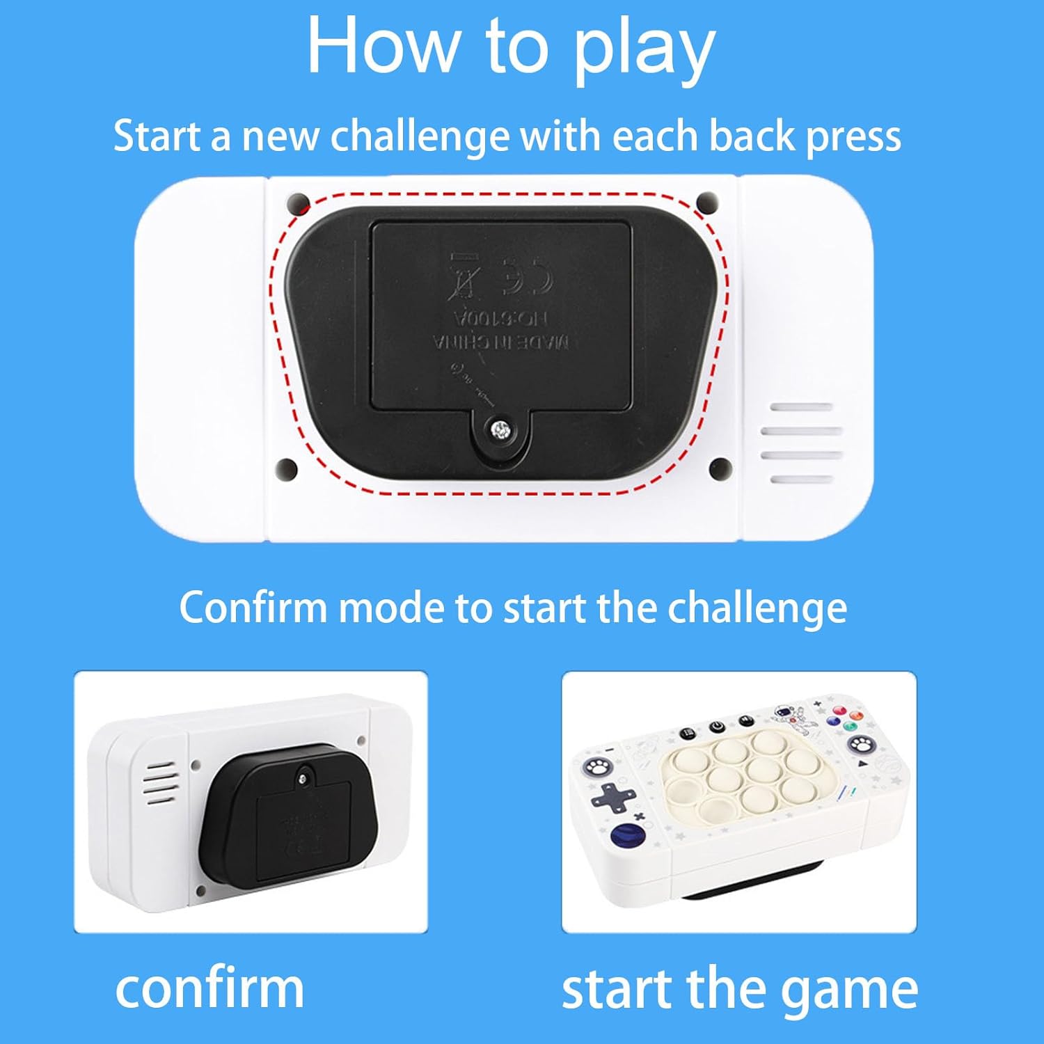 - How to Play: This handheld speed pushing game toy offers 4 fun game modes. 1st mode is challenge mode, featuring 50 levels of tasks. 2nd mode is memory mode, with 9 levels of challenges. 3rd mode is scoring mode, where players aim to turn off as many lights as possible within one minute to achieve a high score. 4th mode is multiplayer mode, where players take turns completing each level, cultivating children's sense of competition and teamwork.
