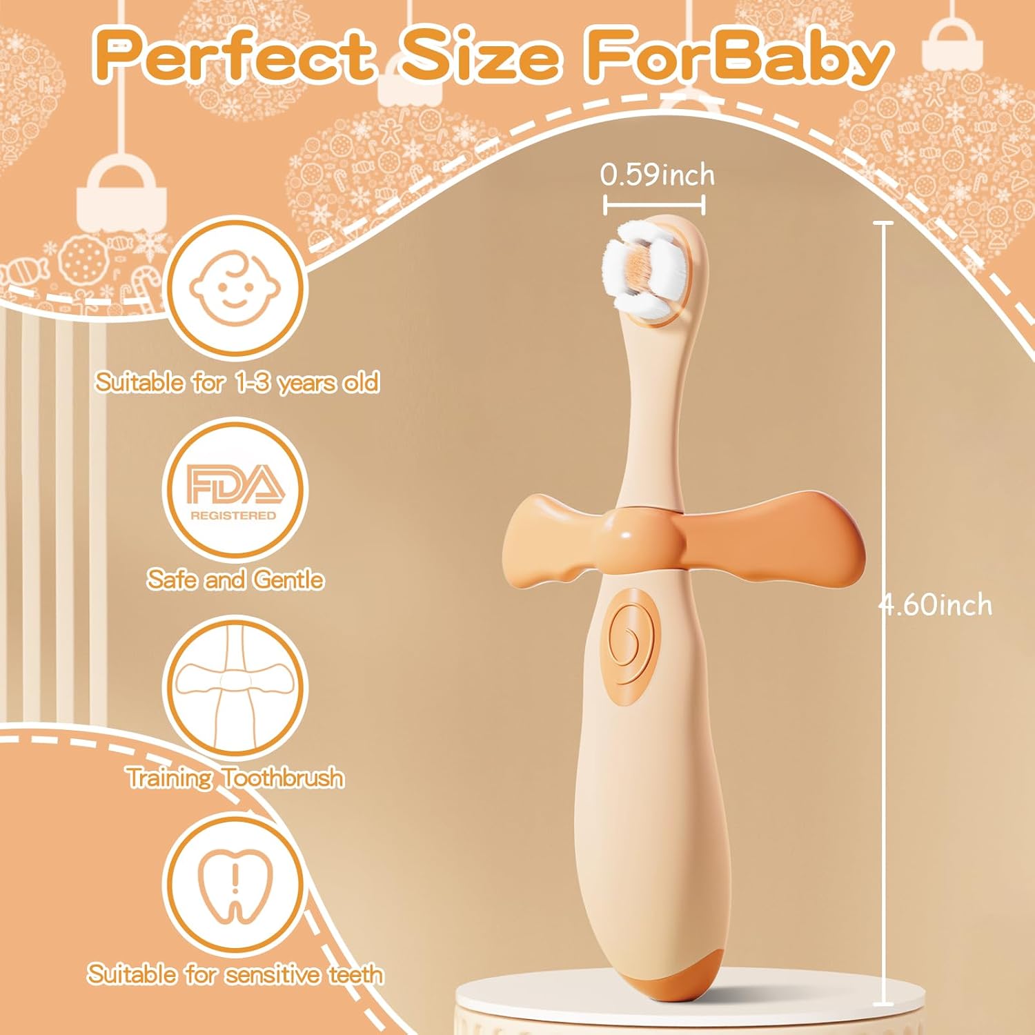 - BABY TRAINING TOOTHBRUSH: The small brush head is just right for 0-3 years old baby's small mouth, help baby learn to brush teeth independently. The right size is just right for baby's little fingers, making it easy for baby to grip the toothbrush. This cute baby training toothbrush helps to help your baby form good oral hygiene habits