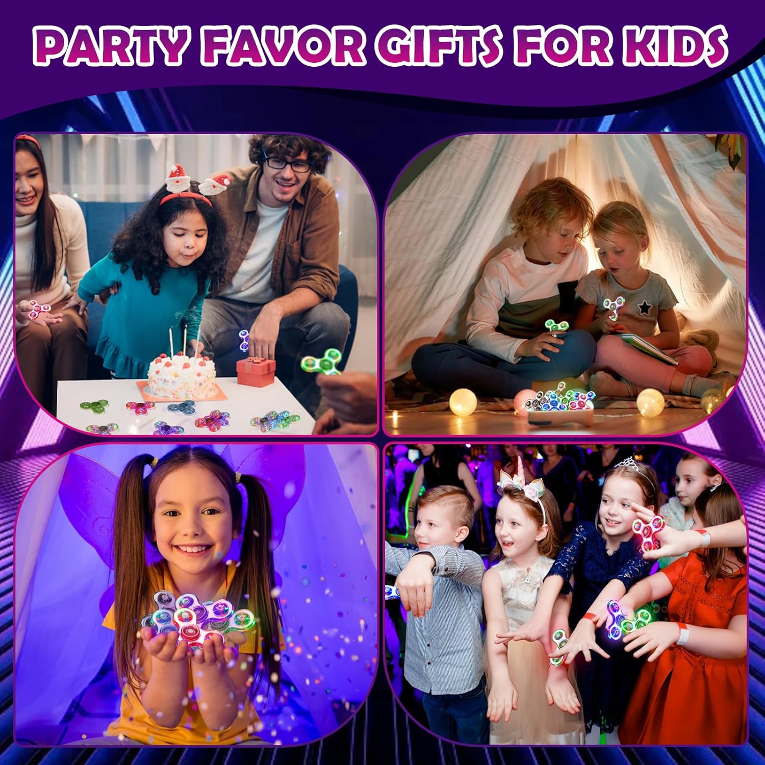 - AMAZING GIFT CHOICE FOR KIDS: SCIONE LED fidget spinner toys make top party favor goody bags, Halloween Goodie Bags Stuffers, pinata fillers, valentines day idea gift, easter basket stuffers for kids, Christmas stocking stuffers or surprise birthday gift for kids. Great gift or stocking stuffer and return gift,graduation gift.