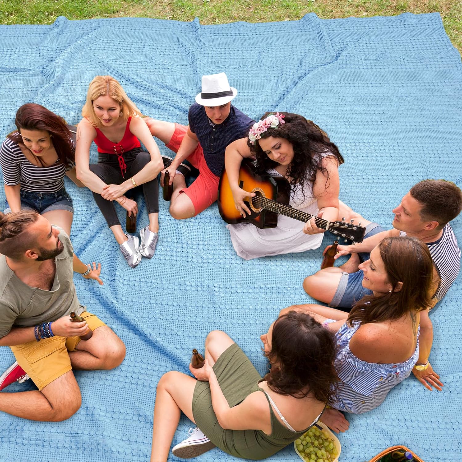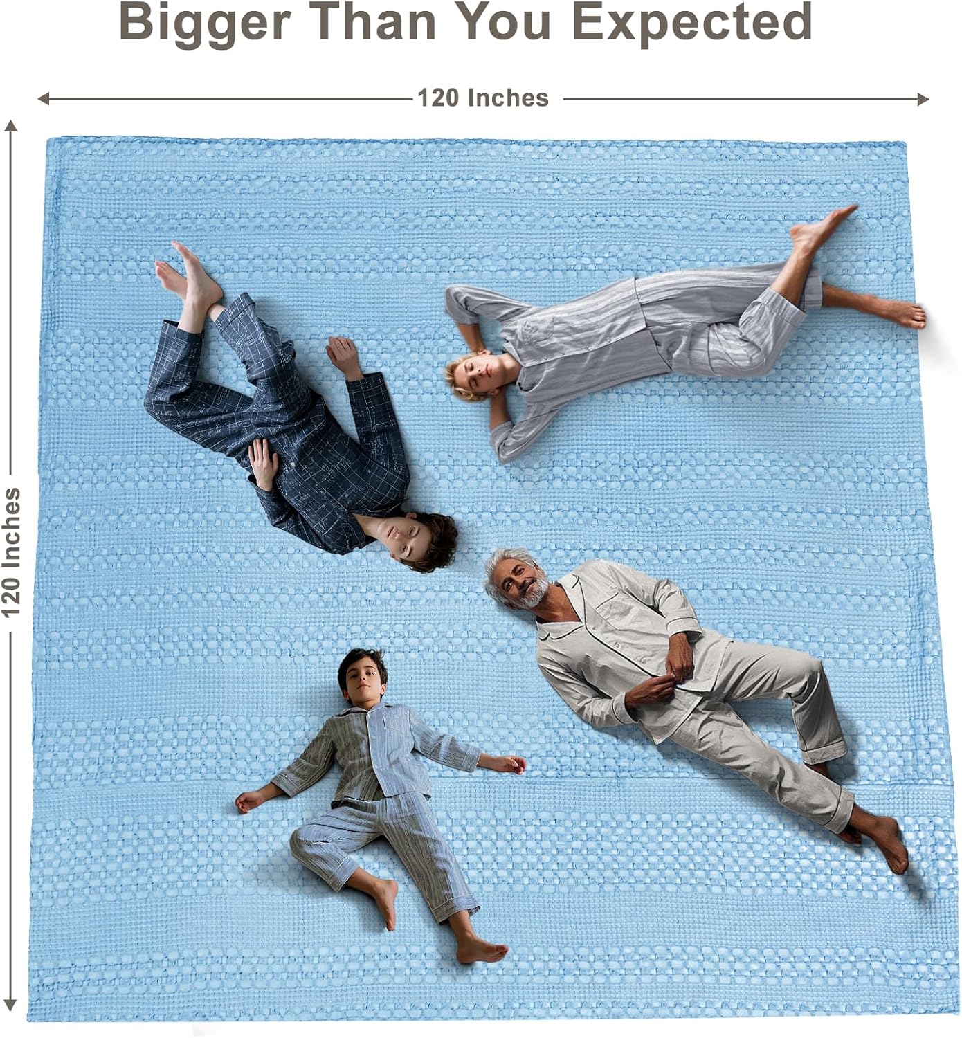 PHF 100% Cotton Waffle Blanket Oversized King 120"x120", Lightweight Breathable Extra Large 10'x10' Summer Blankets for Bed, Giant Big Luxury Aesthetic Woven Bedding for Home Decor, Sky Blue