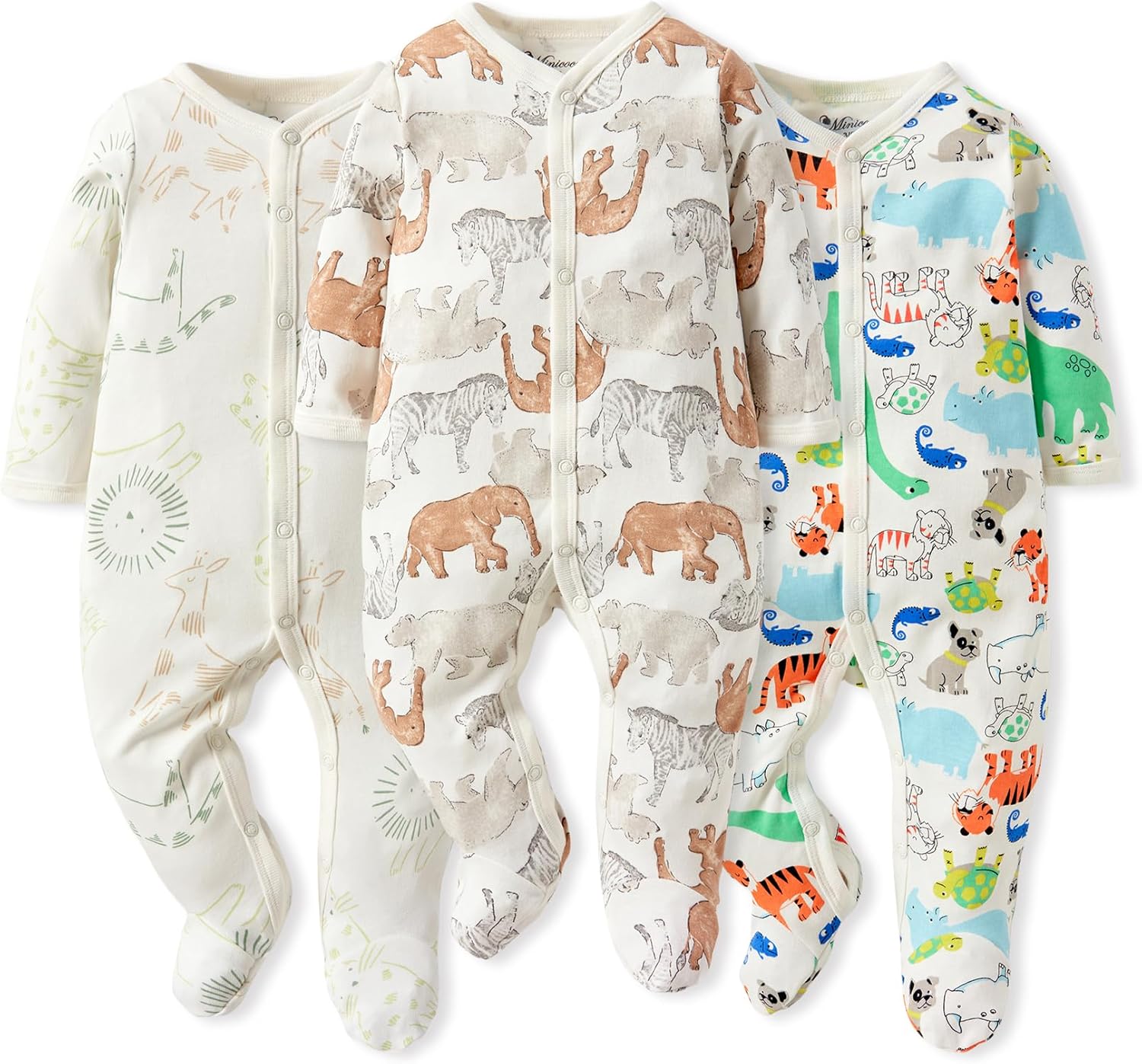 Baby Boys Girls Cotton Footies Multi Pack Long Sleeve Baby Footed One-Piece Jumpsuit Multi Pack