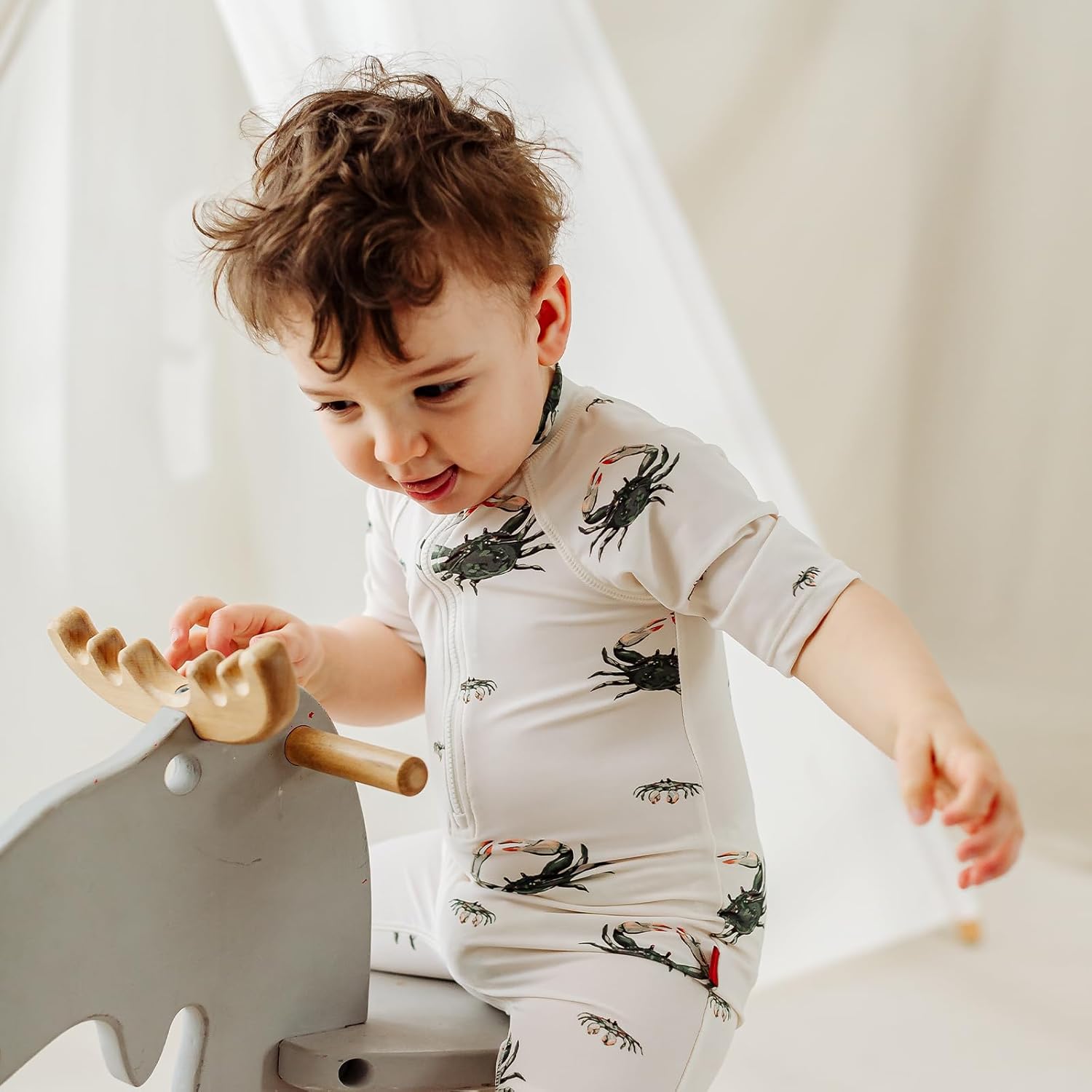 • Convenient Design: This short-sleeve, one-piece rash guard features a front resin zipper, making it easy to put on and take off. The smooth zipper design prevents chafing, ensuring your baby’s delicate skin is protected