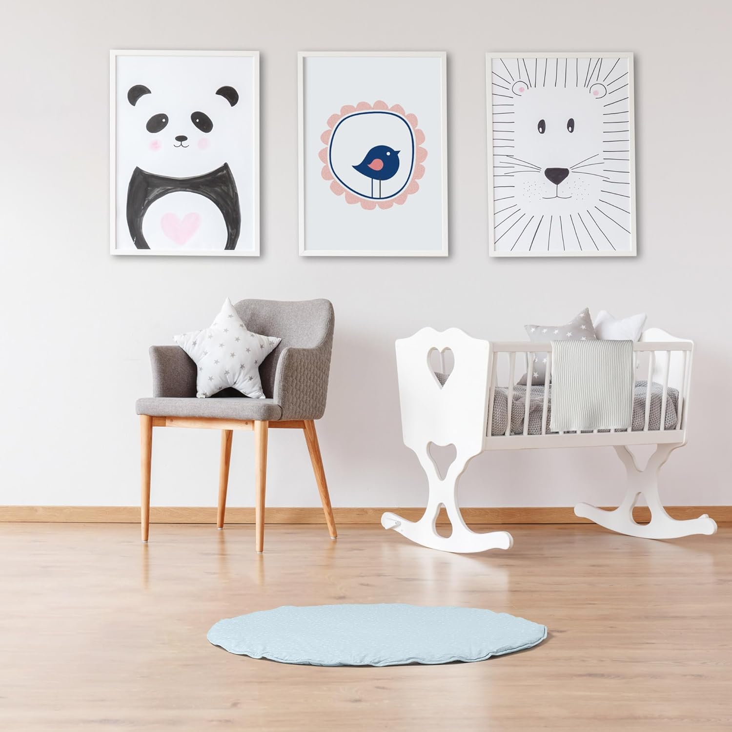 Byrd & Blume Round Baby Play Mat, Organic Cotton Soft Padded Nursery Floor Mat, Safe Hypoallergenic Baby Mat, Reversible, Foldable, Portable Infant Tummy Time Mat Fits Tents & Playpens (40"x40") Blue