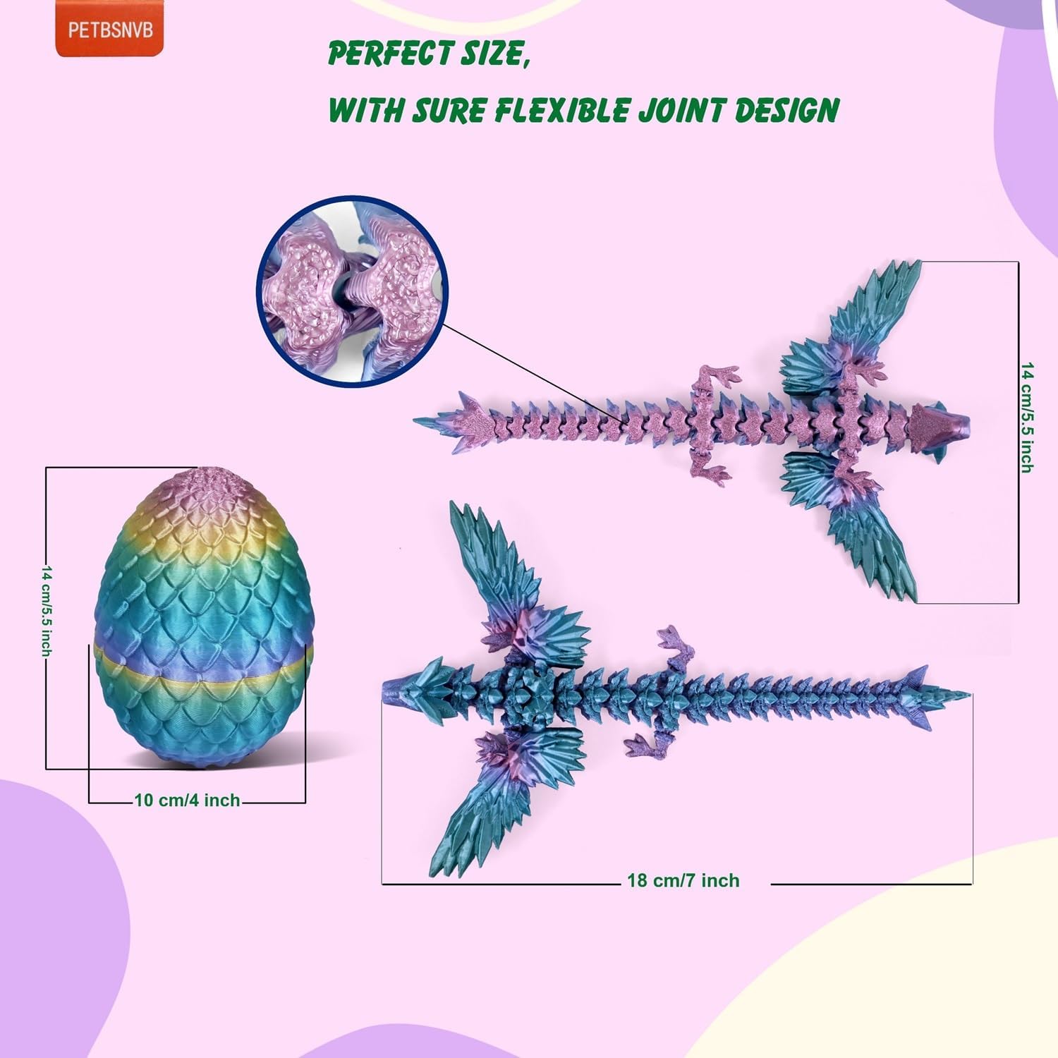 7" 3D Printed Dragon with Wings in Egg, Easter Basket Stuffers, Crystal Dragon Surprise in Eggs, Articulated Dragon, Dragon Fidget Toy, Home Office Decor Executive Desk Toy (Random Rainbow Color)