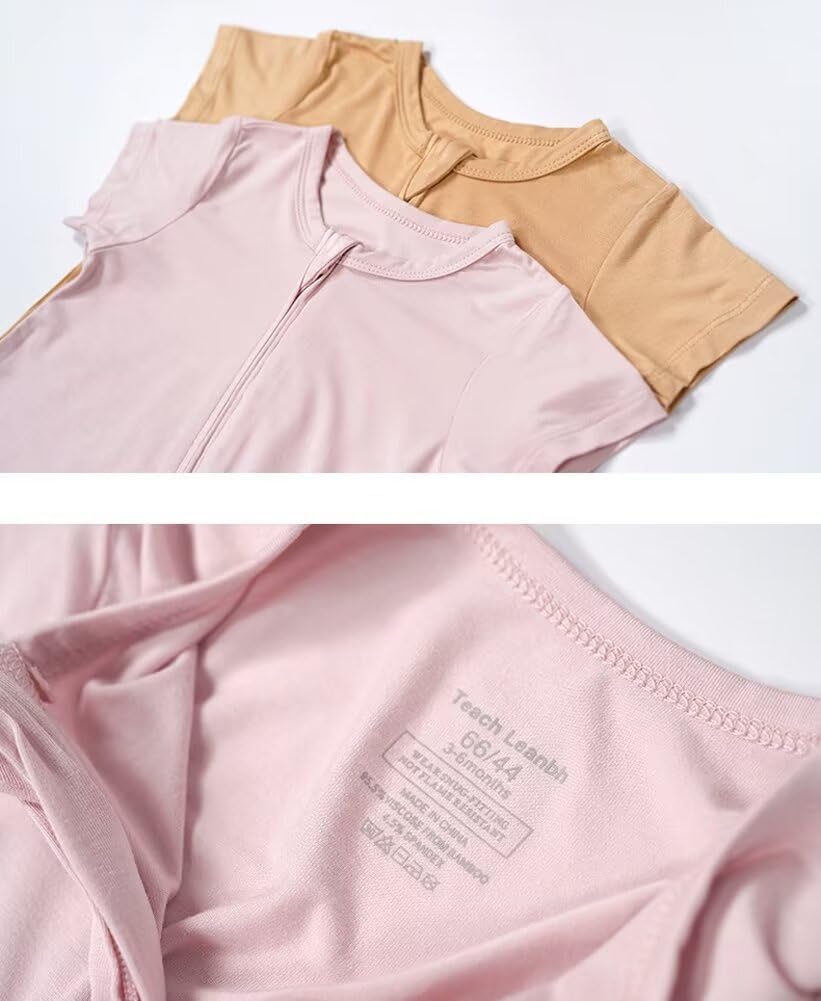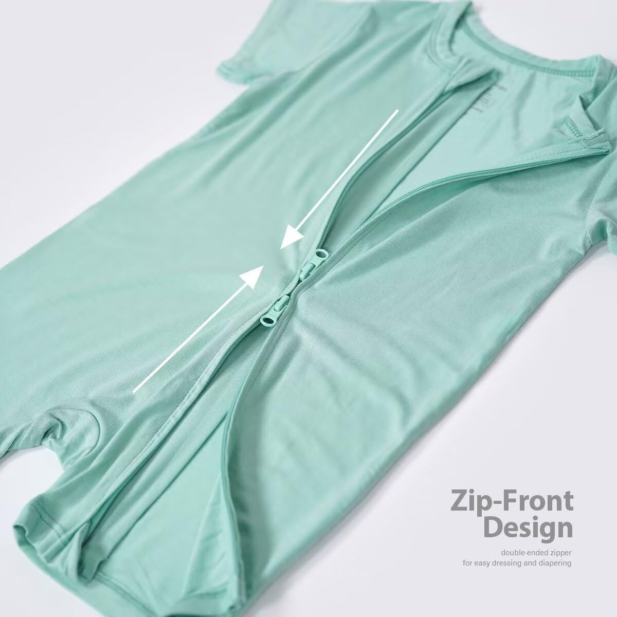 Teach Leanbh Unisex Baby 2 Pack Bamboo Viscose Pajamas Short Sleeve 2 Way Zipper Romper Jumpsuit Sleep and Play