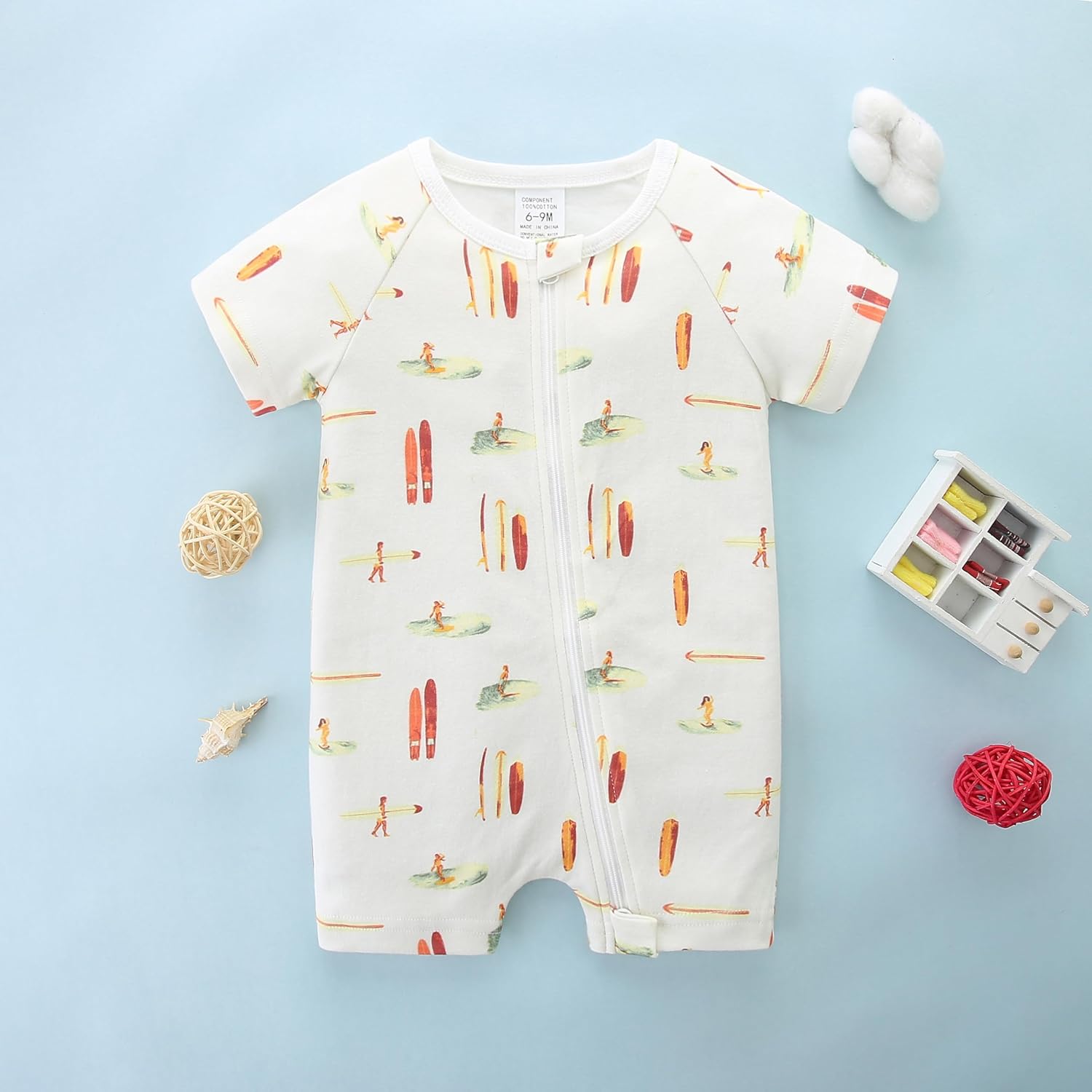 • 🐎【Design】Our newborn boys and girls jumpsuits are designed with double zippers for easy putting on and taking off, and come with different graphic elements, such as dinosaurs, cats, cowboys, lions, etc., giving your baby a colorful day.