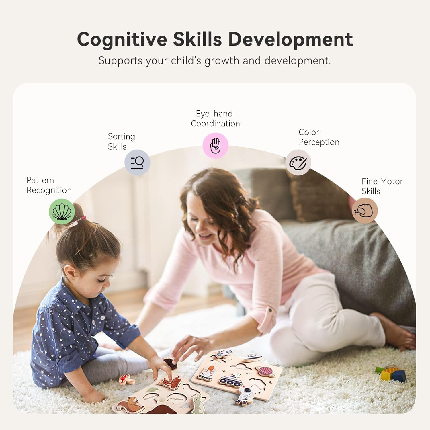 - 𝐃𝐞𝐯𝐞𝐥𝐨𝐩𝐬 𝐂𝐨𝐠𝐧𝐢𝐭𝐢𝐯𝐞 𝐒𝐤𝐢𝐥𝐥𝐬: These puzzles are designed to improve pattern recognition, problem-solving abilities, and fine motor skills, providing a fun and interactive way for children to learn and grow.