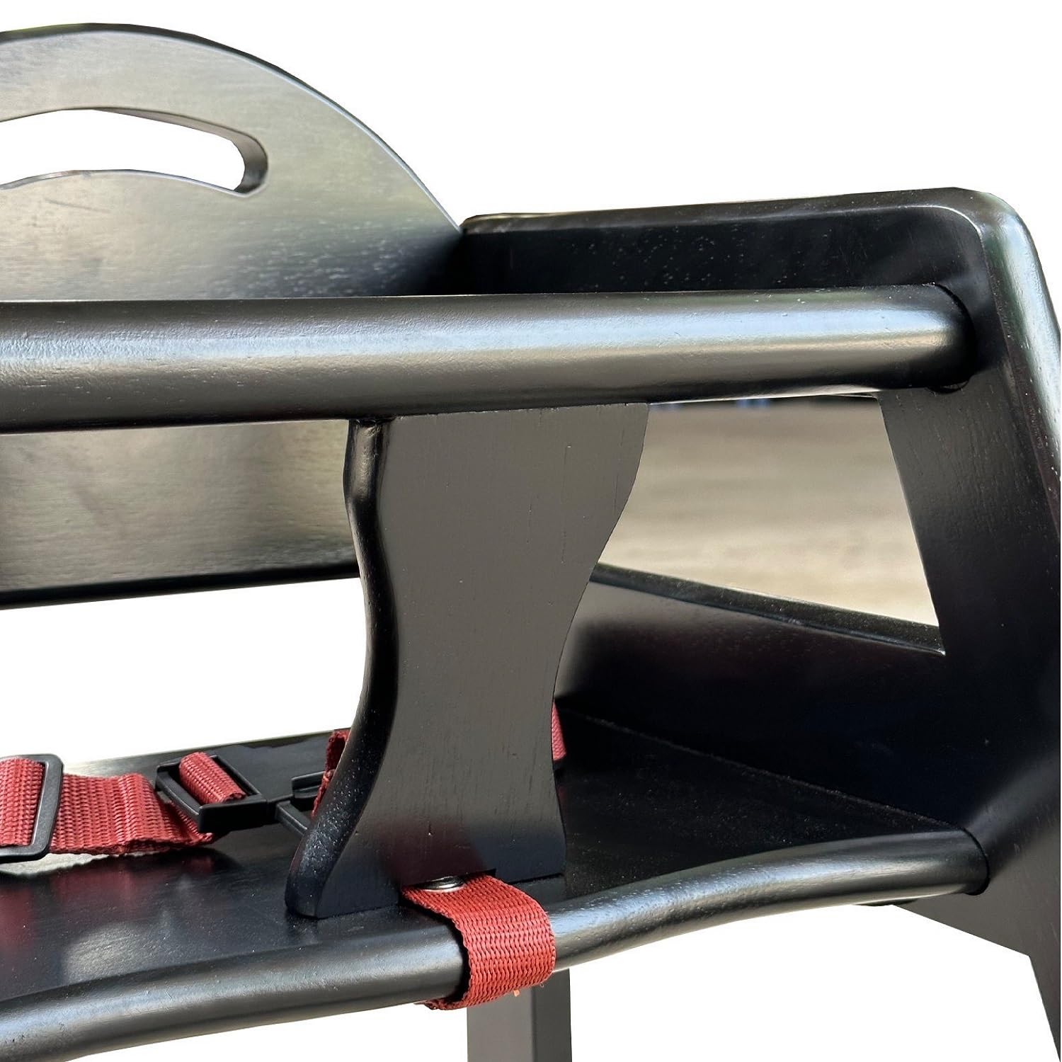 Wooden High Chair for Baby & Toddler – Restaurant-Style Stackable HighChair with Commercial Grade Solid Wood for Dining Table & Kitchen – Compact & Portable Design for Home & Restaurant Use - Black