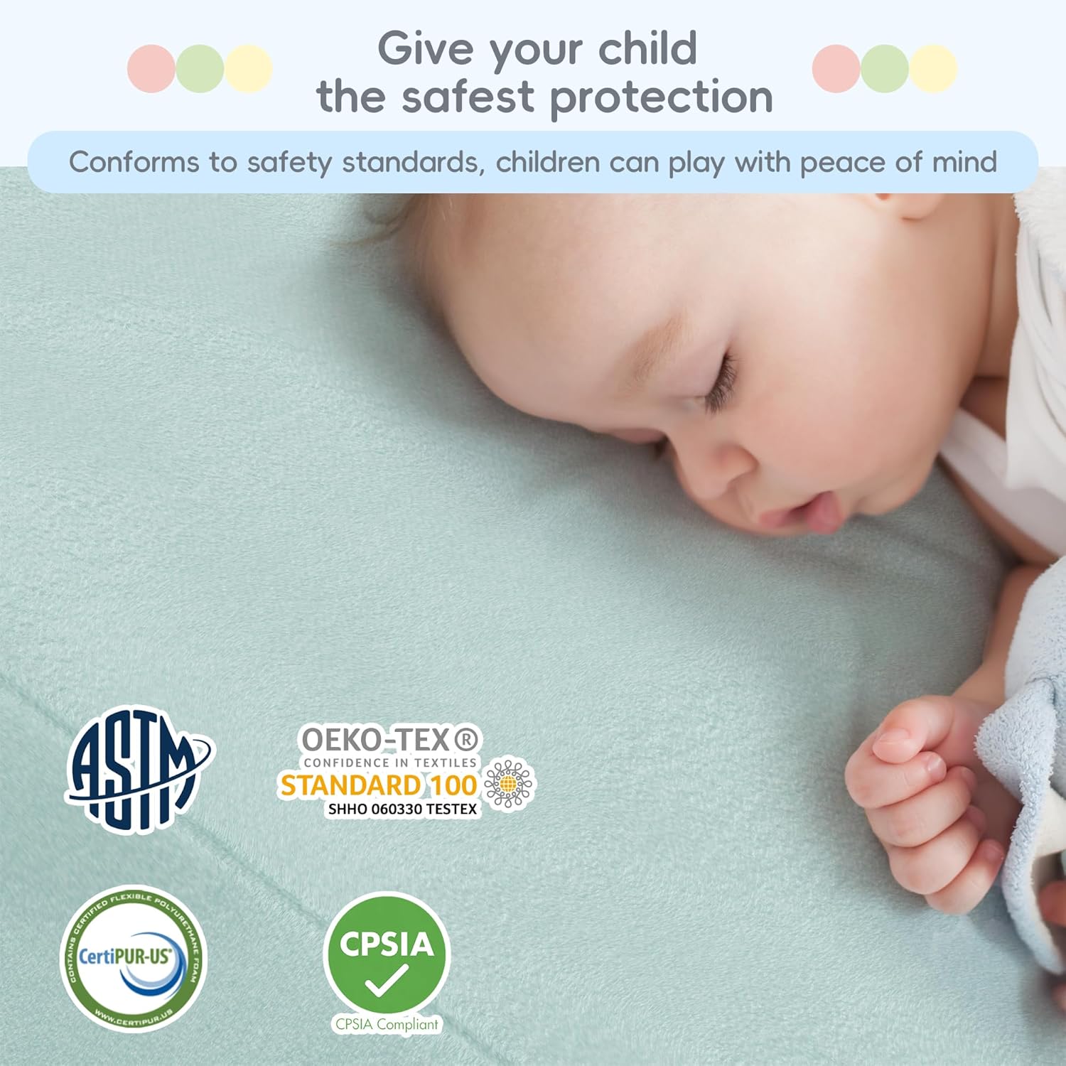 - Safe Premium Materials: Our soft foam play sets for babies are made of CertiPUR certified foam and OEKO-TEX certified fabric, ensuring a safe and reassuring play environment for toddlers. The rounded edges are designed to prevent bumps and injuries