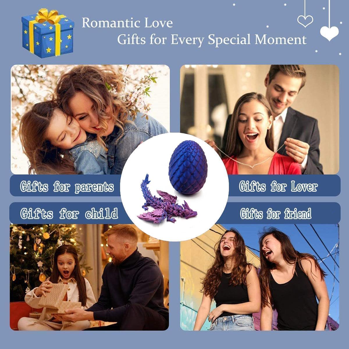 3D Printed Dragon with Wings, 3D Printed Dragon Eggs with Dragon Inside, Dragon Fidget Toy, Articulated Crystal Dragon in Egg, Home Office Decor(Red)