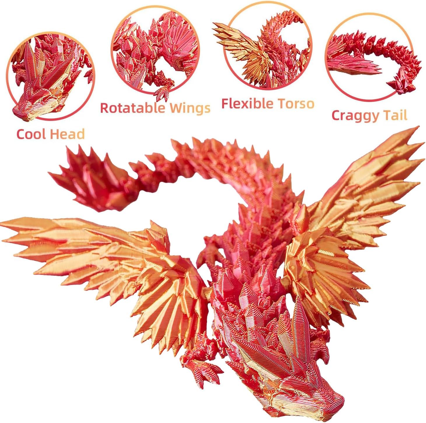 - This exquisite 3D-printed dragon is meticulously crafted with intricate details, including scales, wings, making it a stunning addition to any home or office decor.