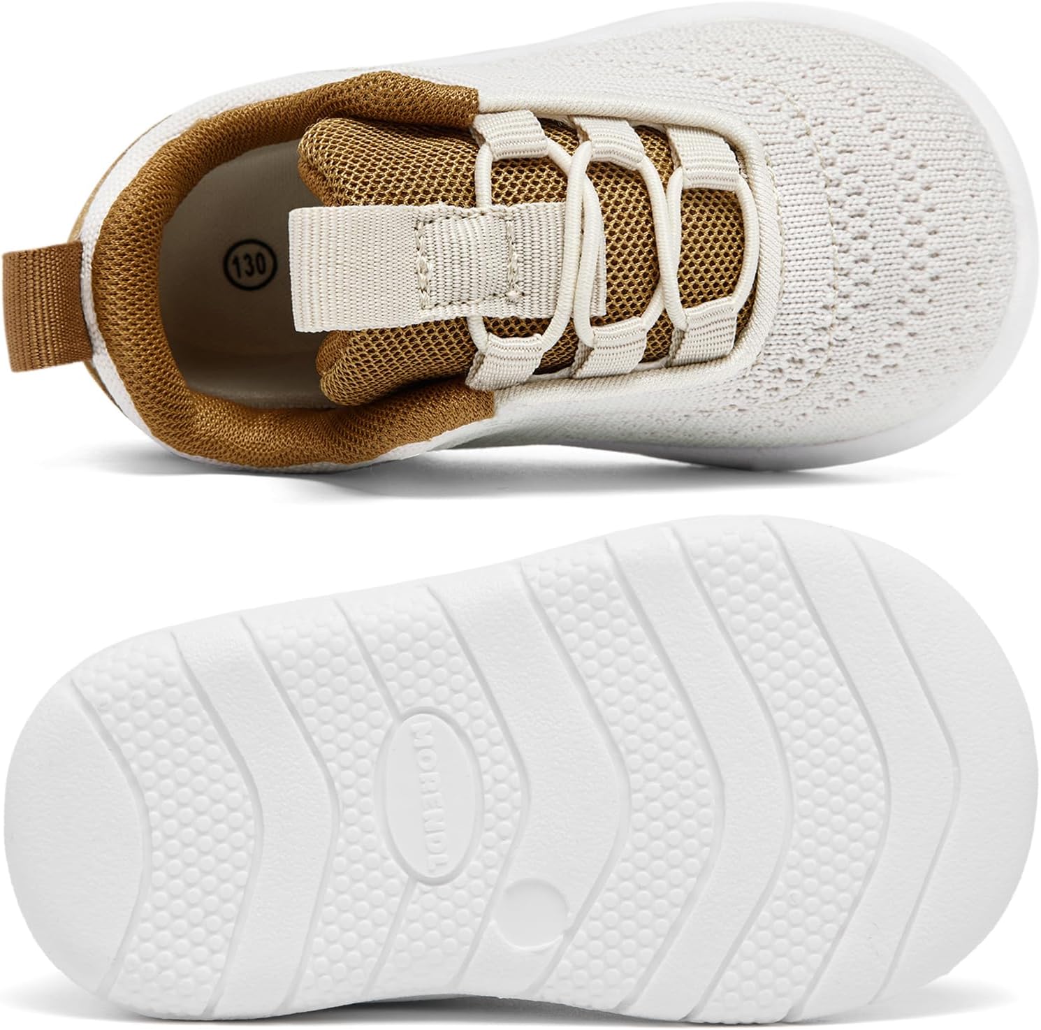 MORENDL Toddler Slip On Sneakers Baby Walking Shoes Non-Slip Breathable Unisex Pink Mesh Lace-Up Athletic Sneakers Infant Running Shoes