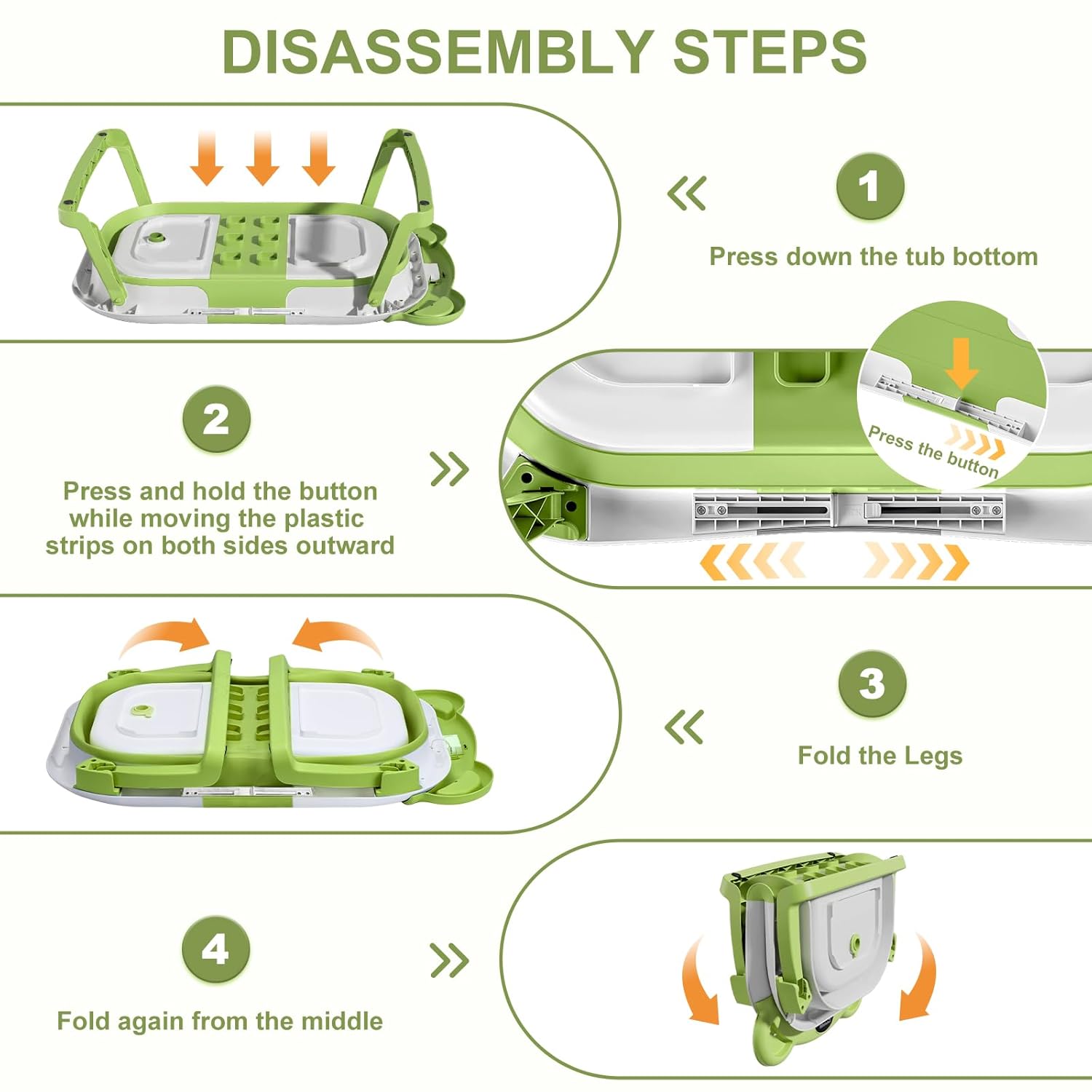• Double-Fold Collapsible Design: TPN collapsible baby bathtub features an ingenious double-fold design, compactly measuring less than 4 inches in thickness. This facilitates effortless storage in any corner and enhances portability for on-the-go convenience, making it a perfect companion both at home and during travel. The off-the-floor drain with a user-friendly rubber plug guarantees seamless draining without the need for relocation.