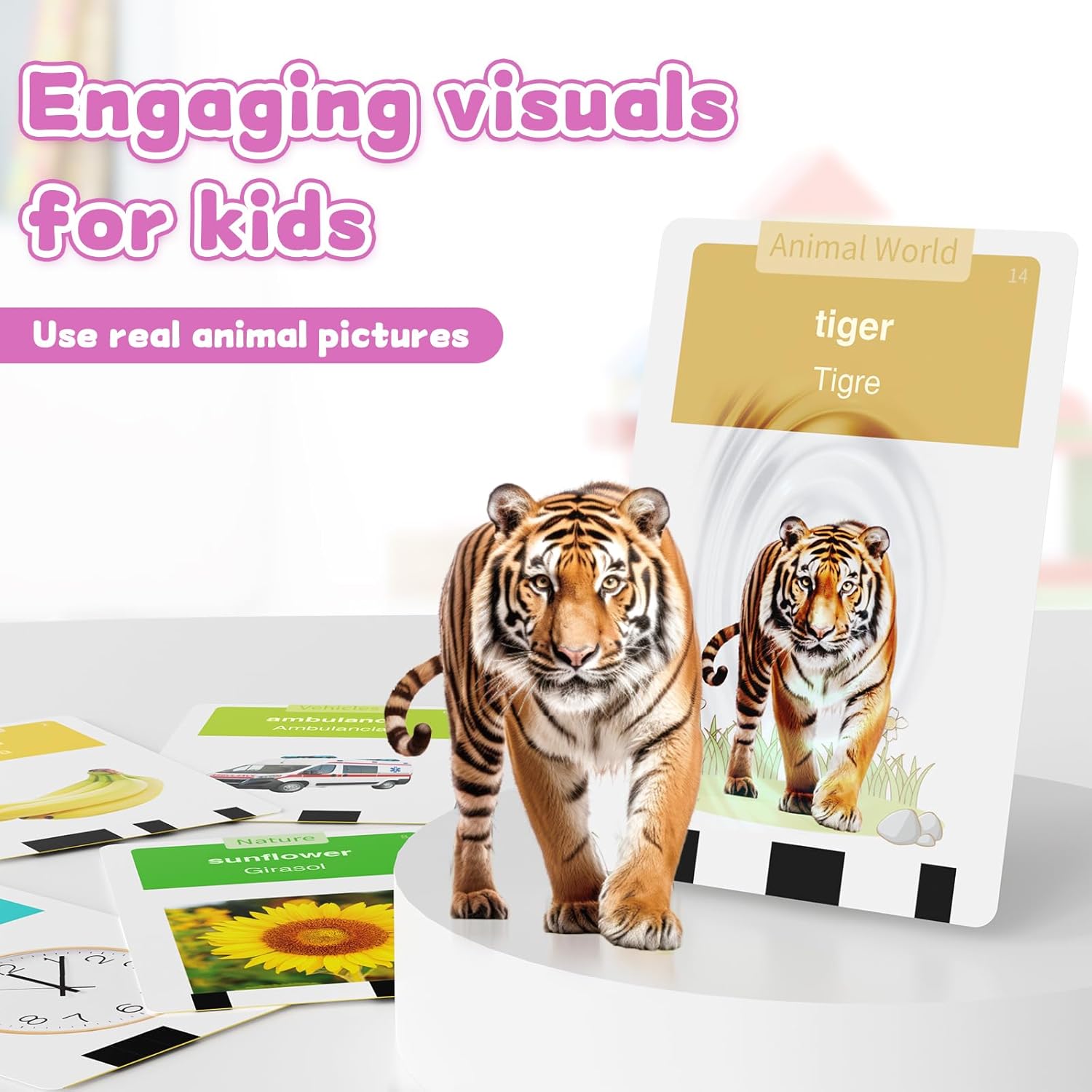 - Elevate your child's learning experience with the Toddler Bilingual Flash Card Machine β an innovative and interactive tool that perfectly combines fun and education! Designed for children ages 3 to 6, these cards use local pronunciations to read 288 English and Spanish vocabulary words, supporting bilingual language development. Each card features clear pronunciation and engaging visuals, making learning a joyful and immersive experience