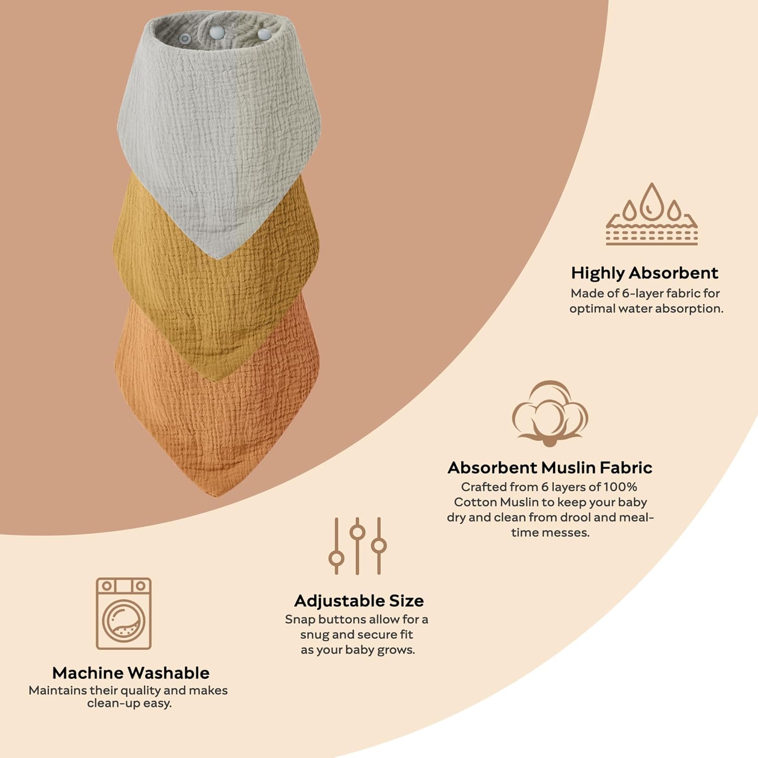 - Muslin Cotton Bandana Drool Bibs: Keep your baby protected from drools and spills with Muslin Cotton Bandana Drool Bibs. Made from 100% Cotton, soft and gentle muslin cotton, these bibs are comfortable and safe for your little one's delicate skin