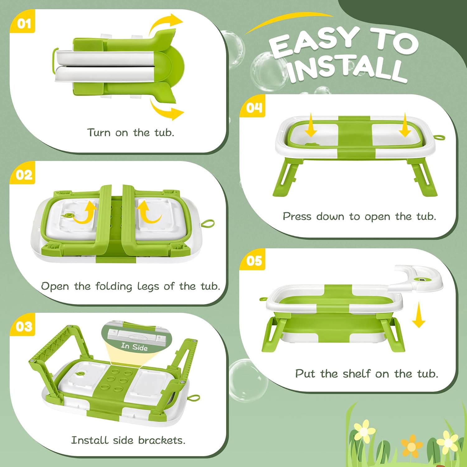 - SAFE MATERIAL:Crafted from high-quality PP+TPE materials, our baby bath tub prioritizes safety, durability, and peace of mind. Odorless and bite-resistant, it ensures no harm to your baby. The stable four-corner support design at the bottom enhances structural stability, minimizing rollover risks.