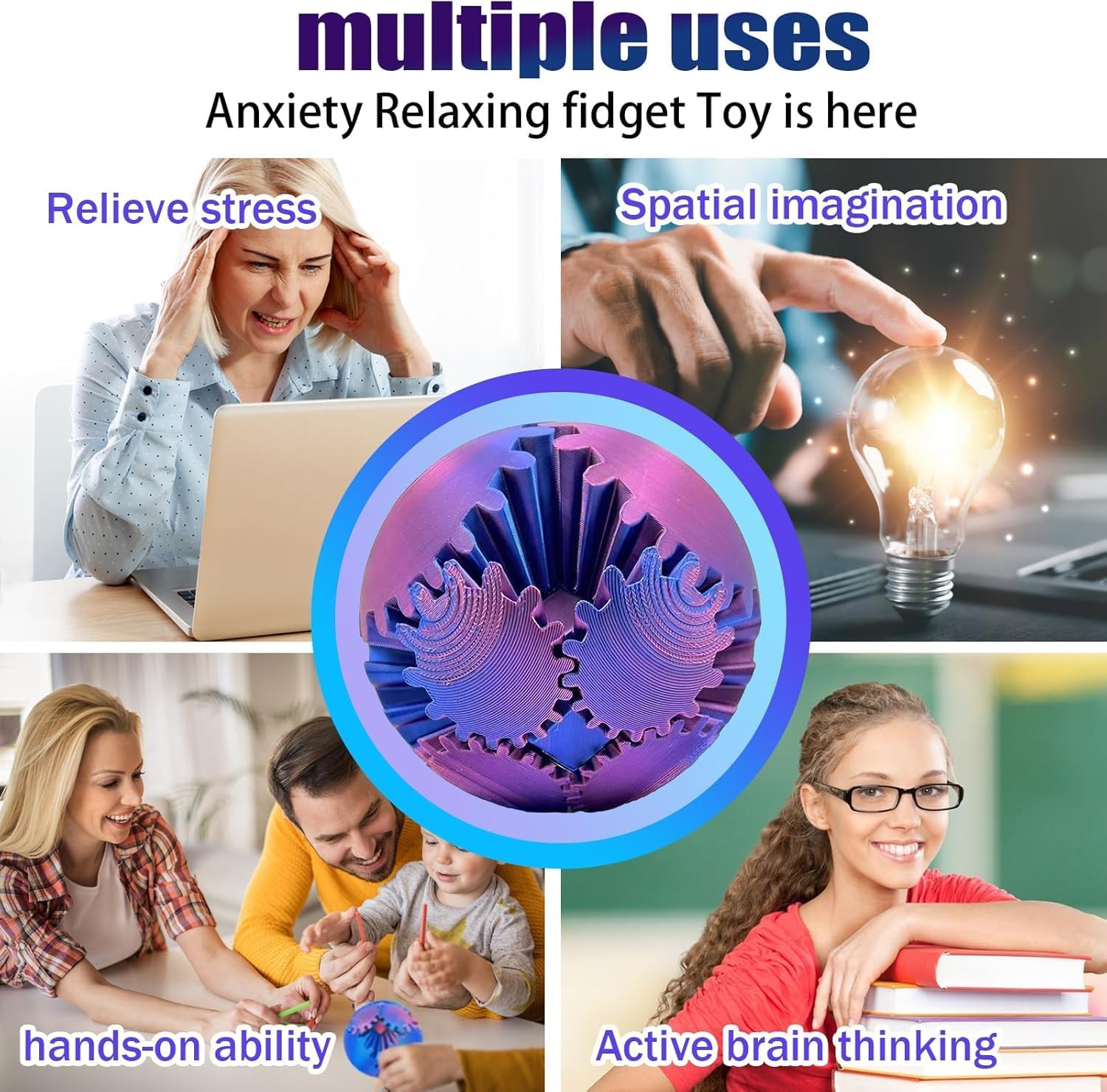 Gear Ball 3D Printed Fidget Toy, Gear Sphere Desk Toy, Stress and Anxiety Relief Ball for Adults at work/study/travel