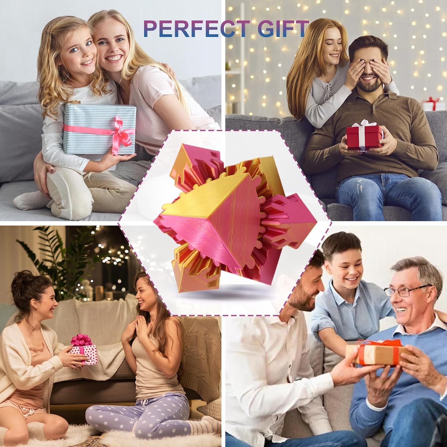 Gear Sphere Gear Cube 3D Printed Gear Ball Spin Cube Fidget Toy Relieving Stress & Anxiety, Fidget Cube GearSphere Desk Toy, Whirling Wonder Fidget for Sensory and Autism (Laser Red Gold)