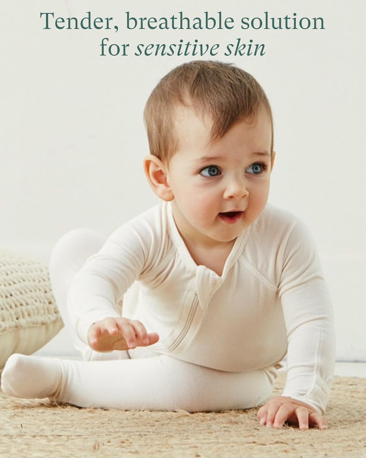 • Soft Rayon - Indulge in softness with our Baby Footie Pajamas – crafted from 96% Rayon, and 4% Spandex. Delight in the buttery softness, gentle on sensitive skin. This fabric acts as a moisture-wicking sanctuary, ensuring a dry and snug embrace. With a stretchy composition that molds to your baby's body, it flexes seamlessly with every adorable move. Elevate comfort with PurComfy – where opulence meets the perfect blend of softness and functionality.