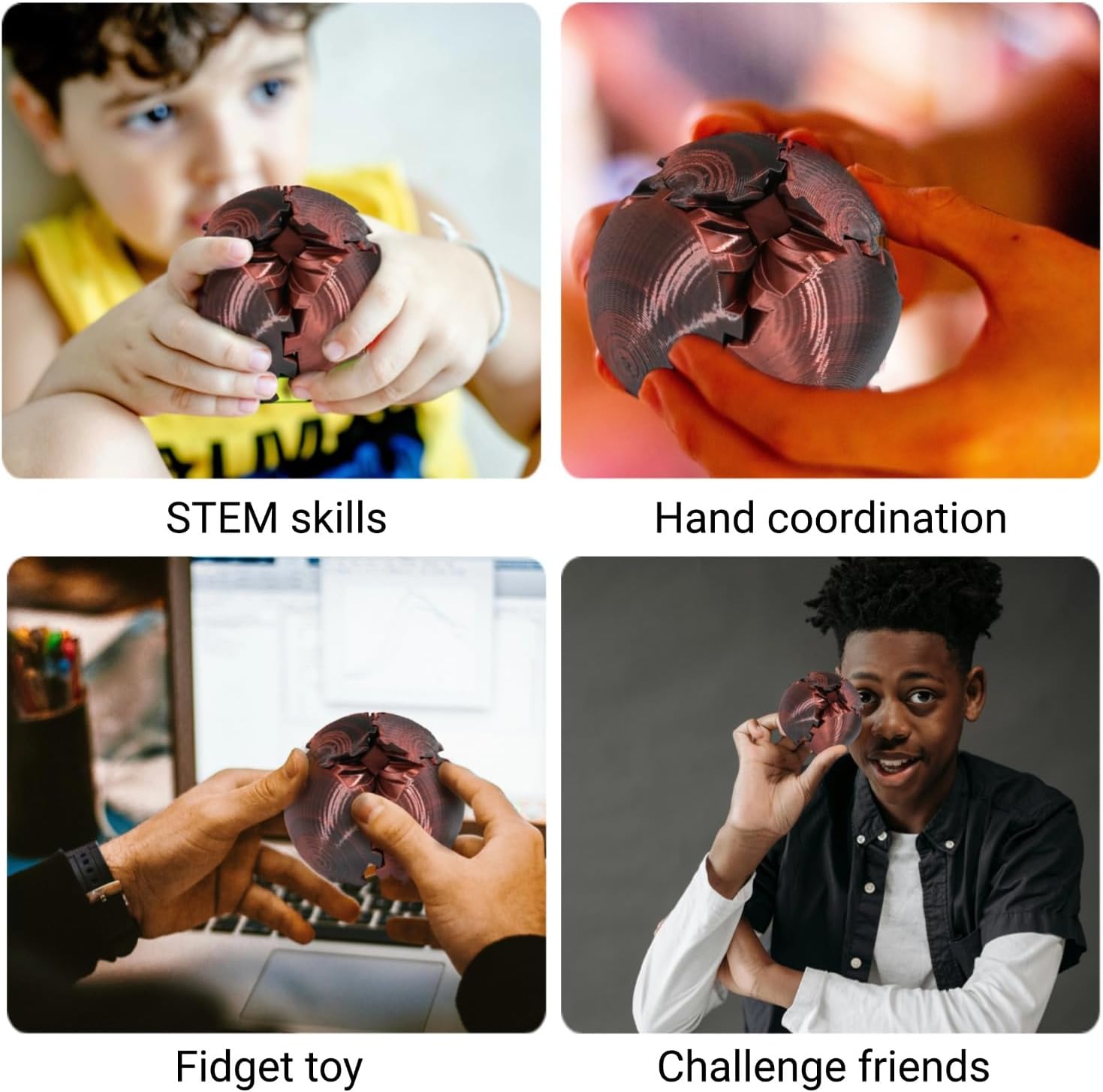 - 【Versatile for All Ages】The 3D printed gear ball spin ball cube fidget toy caters to people of all age groups, including children and adults. The Gear sphere toy serves as a stress relief tool and an entertaining toy, offering benefits to users across the board.