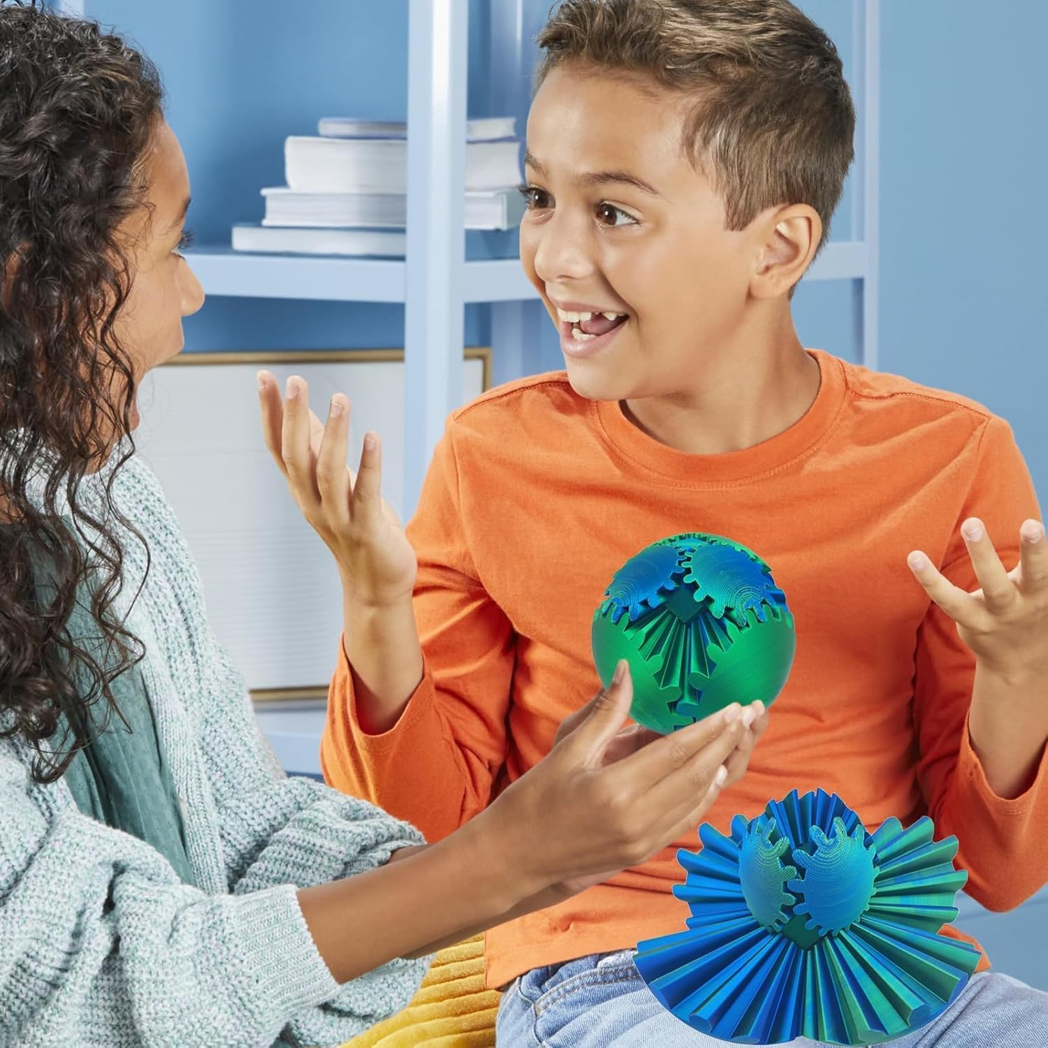 Gear Ball 3D Printed Gear Ball Spin Ball OR Cube Fidget Toy - Perfect for Stress and Anxiety Relaxing Fidget Toy, Desk Toy - Ideal for Sensory Needs and Autism (Blue Green)