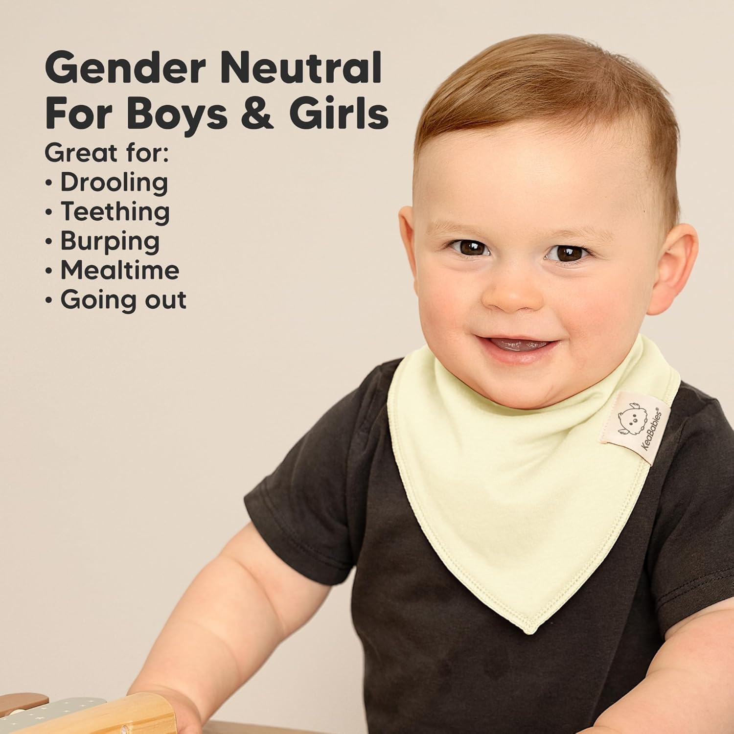 - 8-Pack Baby Bandana Bibs - KeaBabies Organic Drool Bibs come in gender-neutral shades to easily match your baby’s daily outfit. The soft and breathable fabric of these absorbent baby bibs ensure your little one stays cool while drooling and teething.