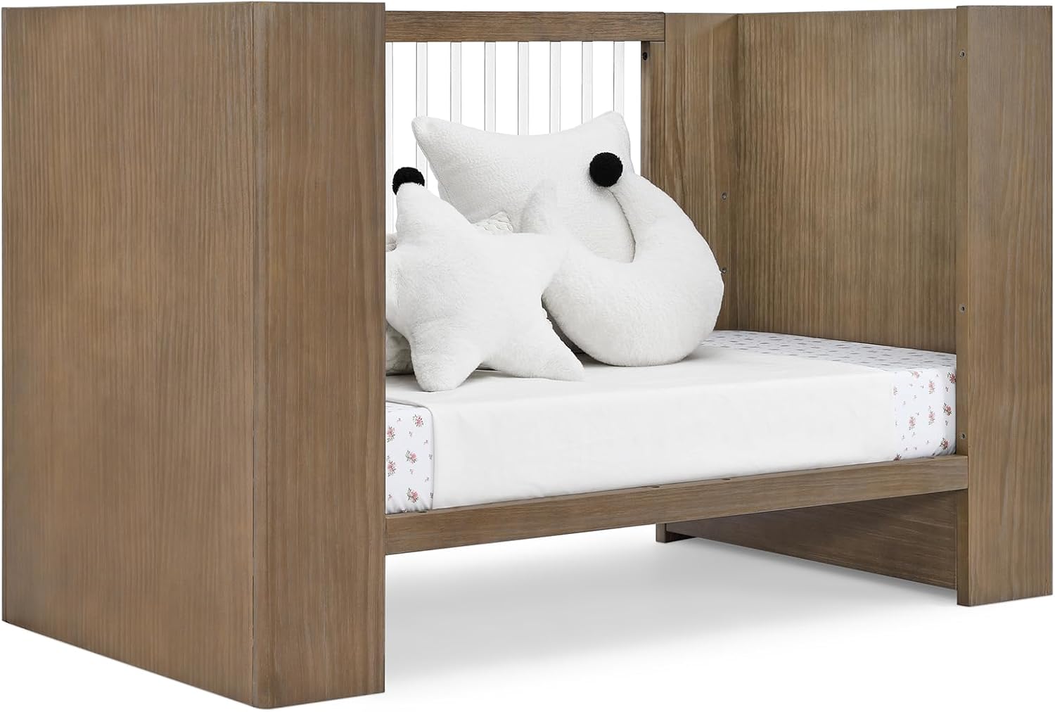 - QUALITY MATERIAL: Made of sustainable materials like New Zealand pine, TSCA compliant engineered wood and Acrylic | SIZE: Assembled dimensions: 54.75"W x 30"D x 35.25"H | Easy assembly | Uses a standard size crib mattress (sold separately)