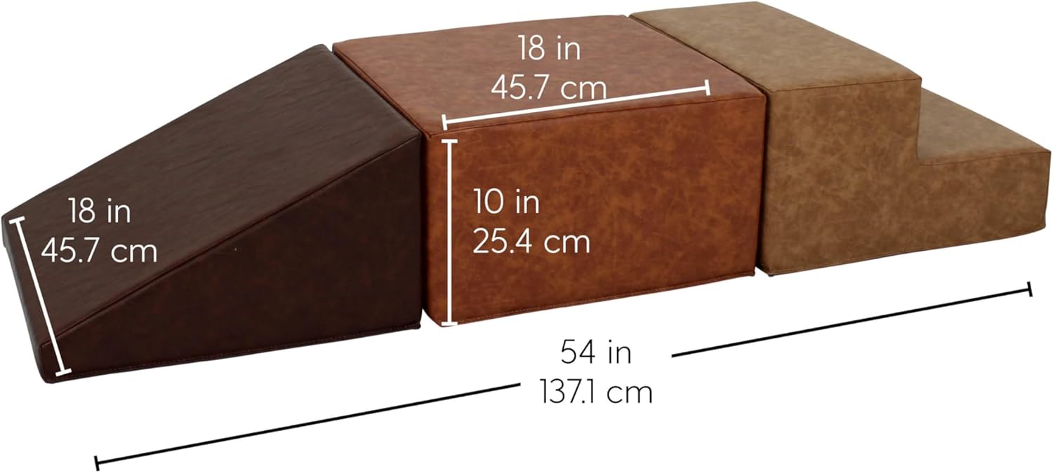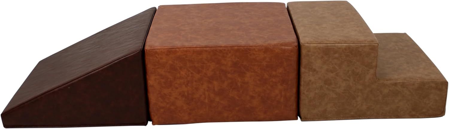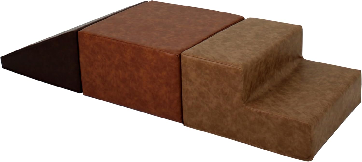 SoftScape Rustic Kid Playtime Climber, Indoor Active Playset for Toddlers and Children, Safe Soft Foam for Crawling and Sliding (3-Piece Set) - Distressed Faux Leather Assorted