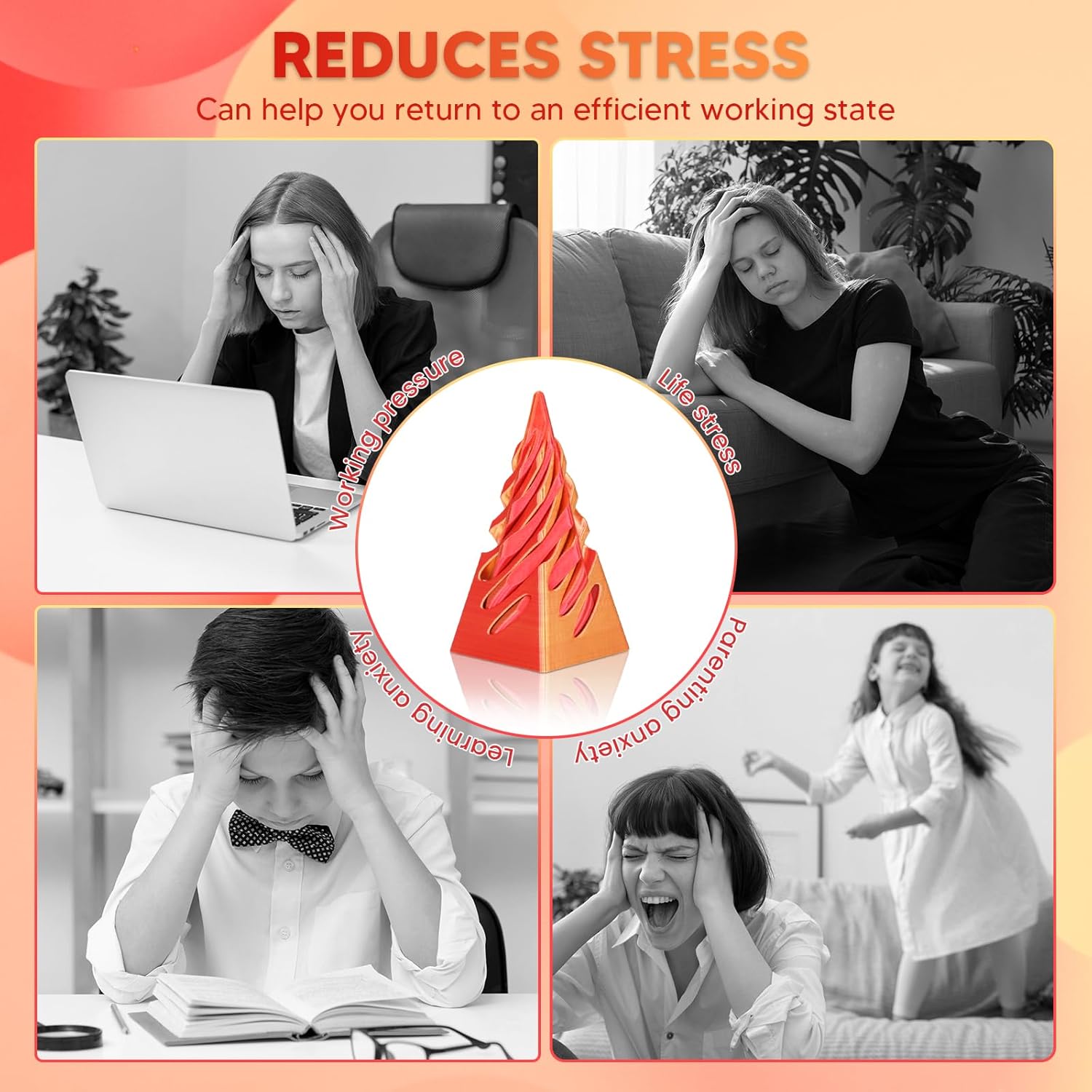 Impossible Pyramid Passthrough Sculpture, 3D Printed Spiral Cone Fidget Toys, Anxiety Relief Pass Through Pyramid Fidget Toy, Stress Relief Desk Toy Adults, Christmas, Birthday Gifts (Gold Red)