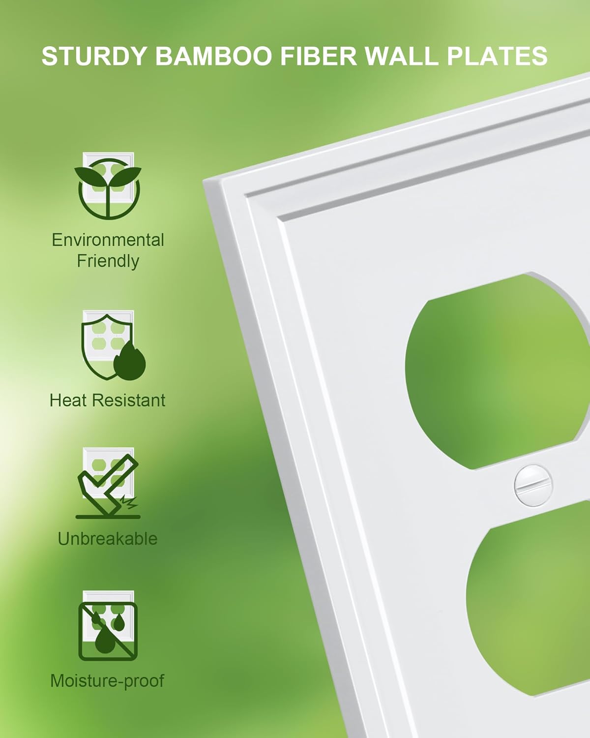 2-Pack Double Duplex Outlet Cover, Natural Bamboo Fiber Switch Plates and Outlet Covers, White Decorative Wall Plates for Electrical Outlets, 2 Gang Receptacle Cover, Corrosion Resistant