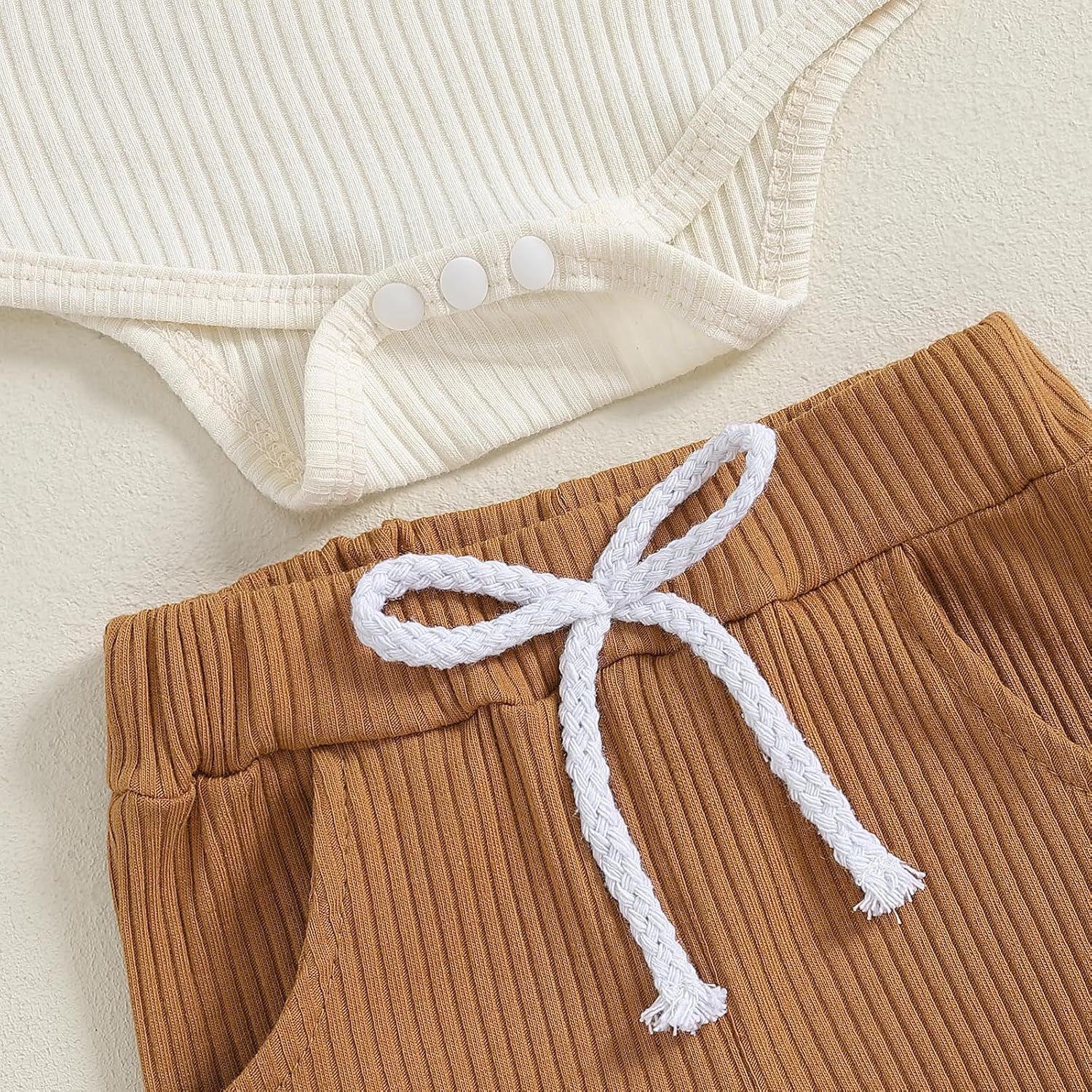 fhutpw Baby Boy Clothes 3 6 12 18 Months Ribbed Knitted Long Sleeve Romper and Pants Sets Newborn Fall Splicing Color Outfits