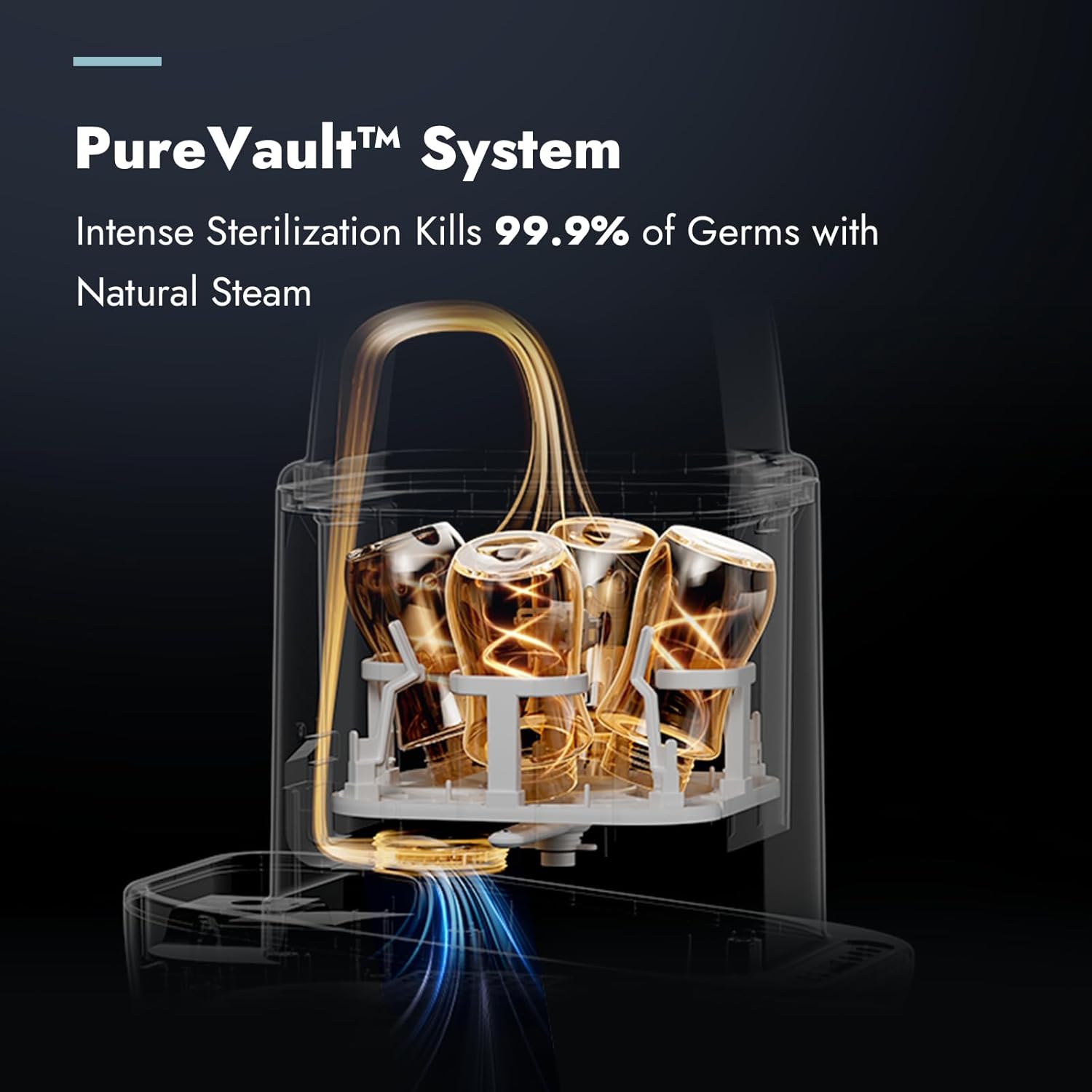 - 𝐏𝐨𝐰𝐞𝐫𝐟𝐮𝐥 𝐂𝐥𝐞𝐚𝐧𝐢𝐧𝐠 𝐁𝐚𝐜𝐤𝐞𝐝 𝐛𝐲 𝐄𝐱𝐭𝐫𝐞𝐦𝐞 𝐋𝐚𝐛 𝐓𝐞𝐬𝐭𝐢𝐧𝐠: With 26 precision jets, 25,000Pa pressure, and 99.99% sterilization, it easily removes even scorched milk. Proven through 1000+ lab tests on burnt and spoiled milk — delivering cleaning performance far beyond everyday messes like overnight bottles.