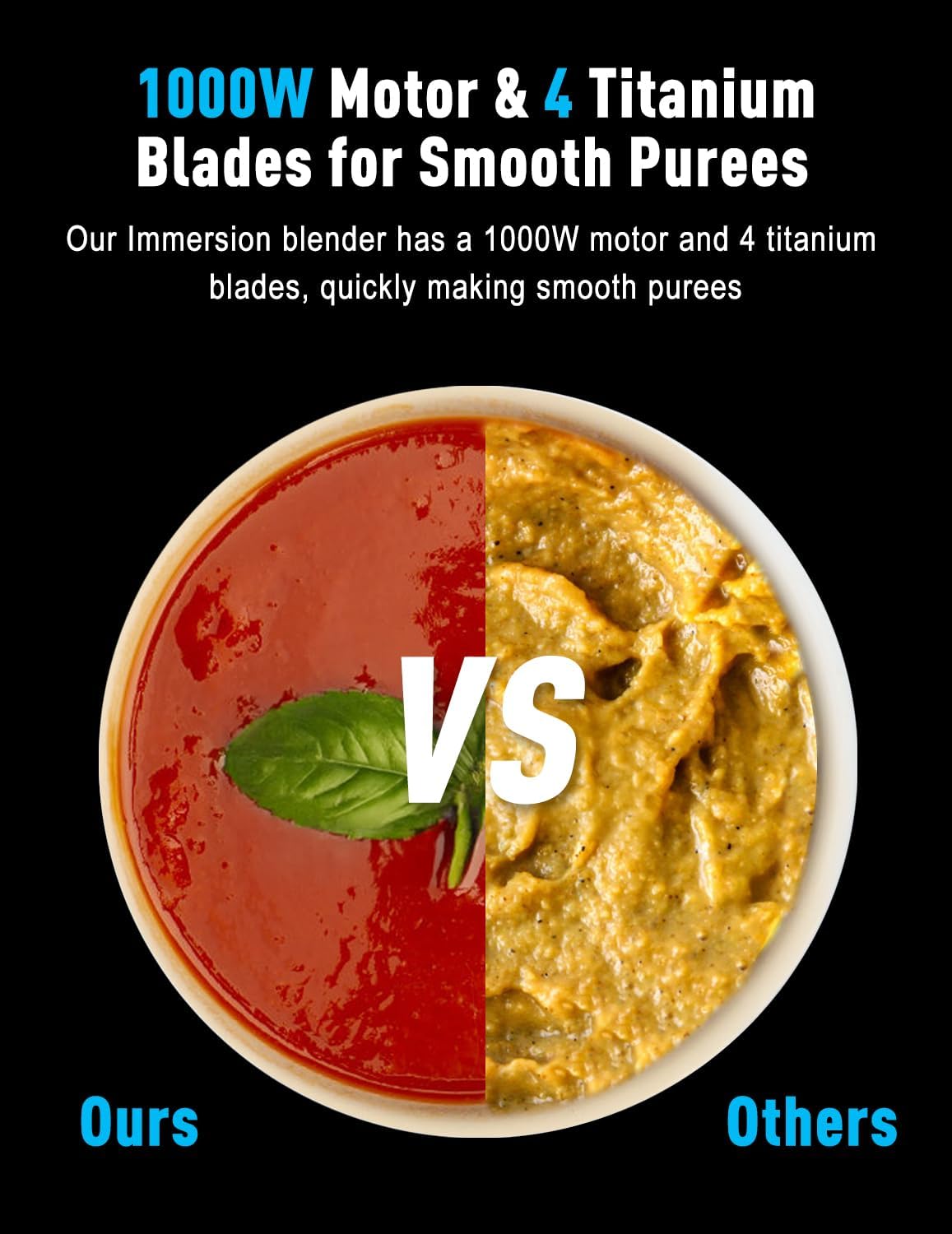 - 【1000W High-Power Motor】Our 2025 Immersion Blender, powered by a 1000W pure copper brushless motor, effortlessly crushes even the toughest ingredients. Designed for power and durability, it ensures smooth, consistent results with every use.